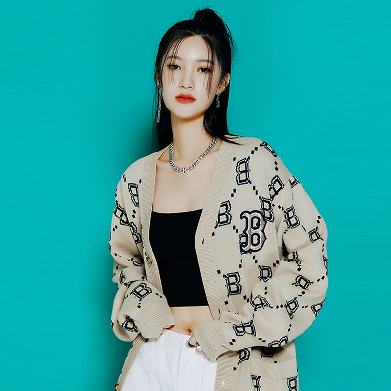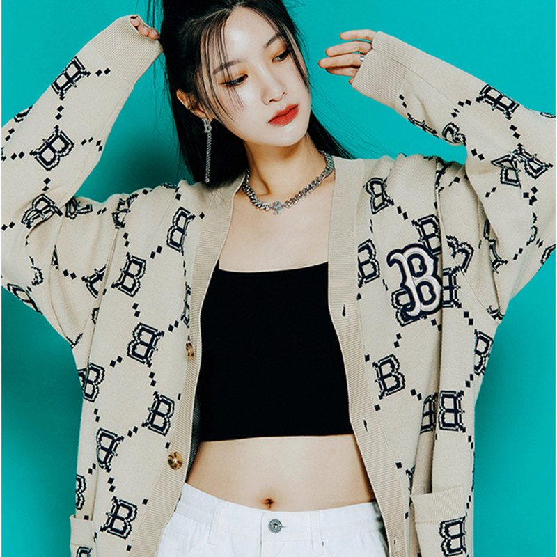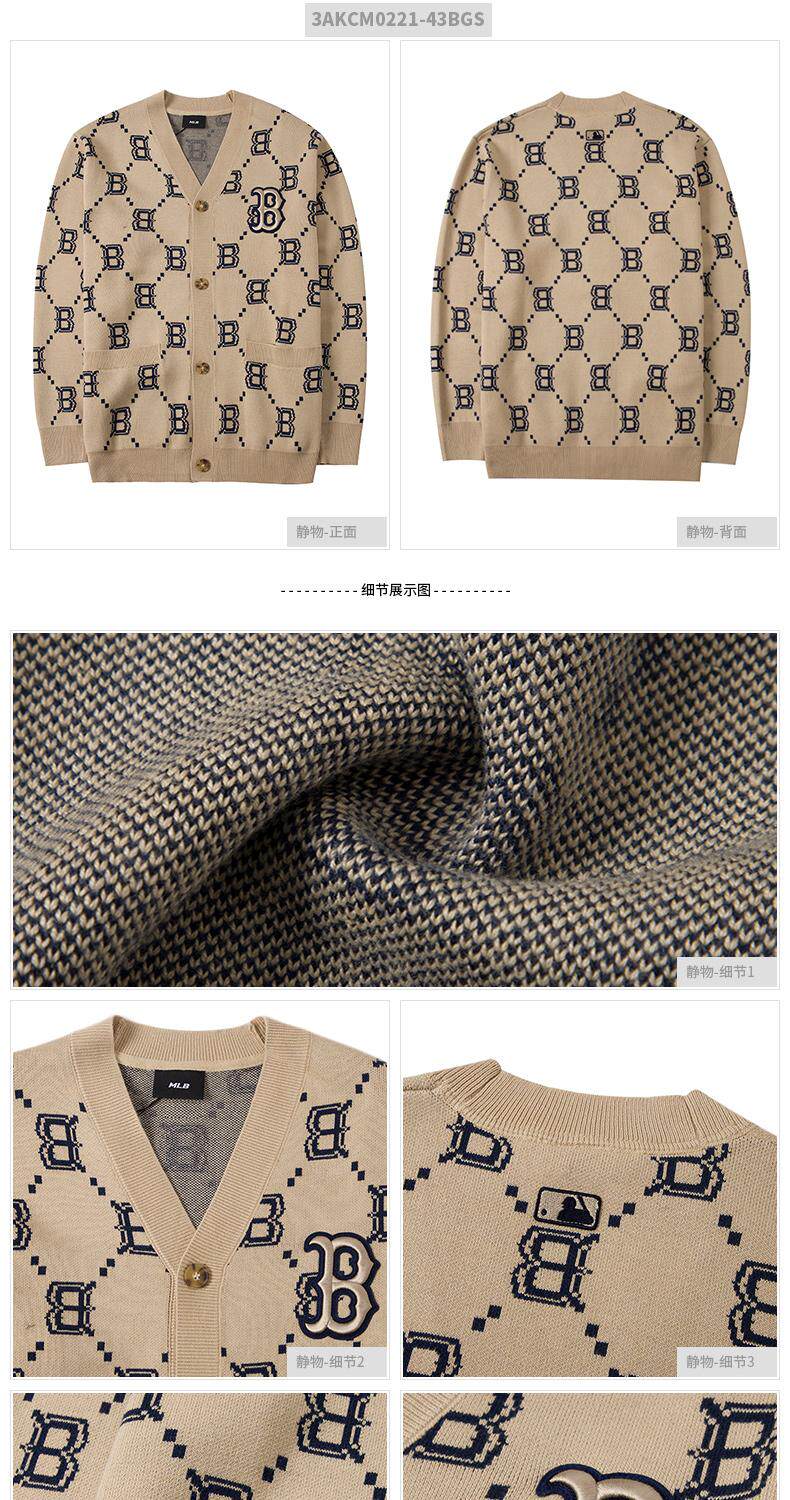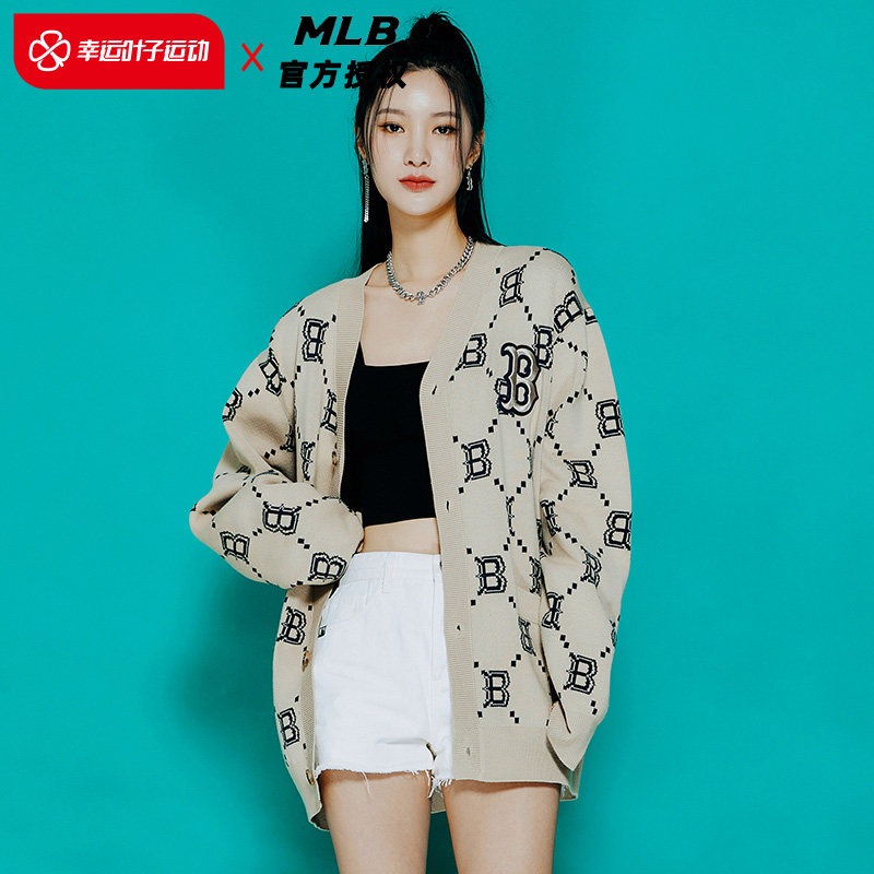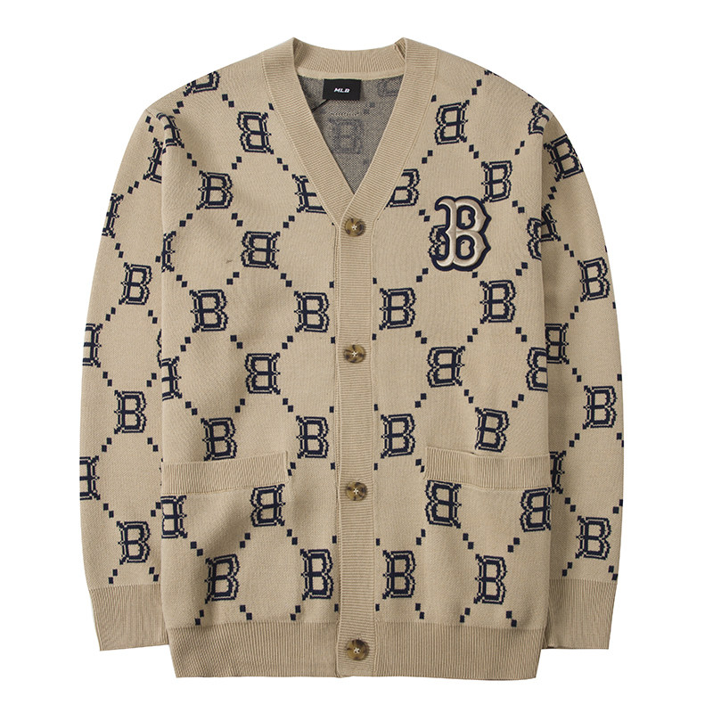 MLB Трикотажный ретро свитер подходит для мужчин и женщин, абрикосовый кардиган, куртка, коллекция 2022, оверсайз