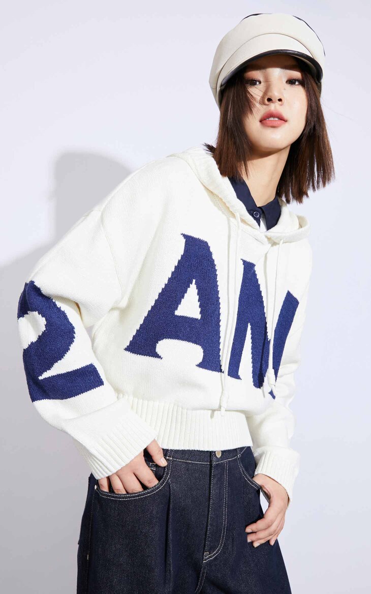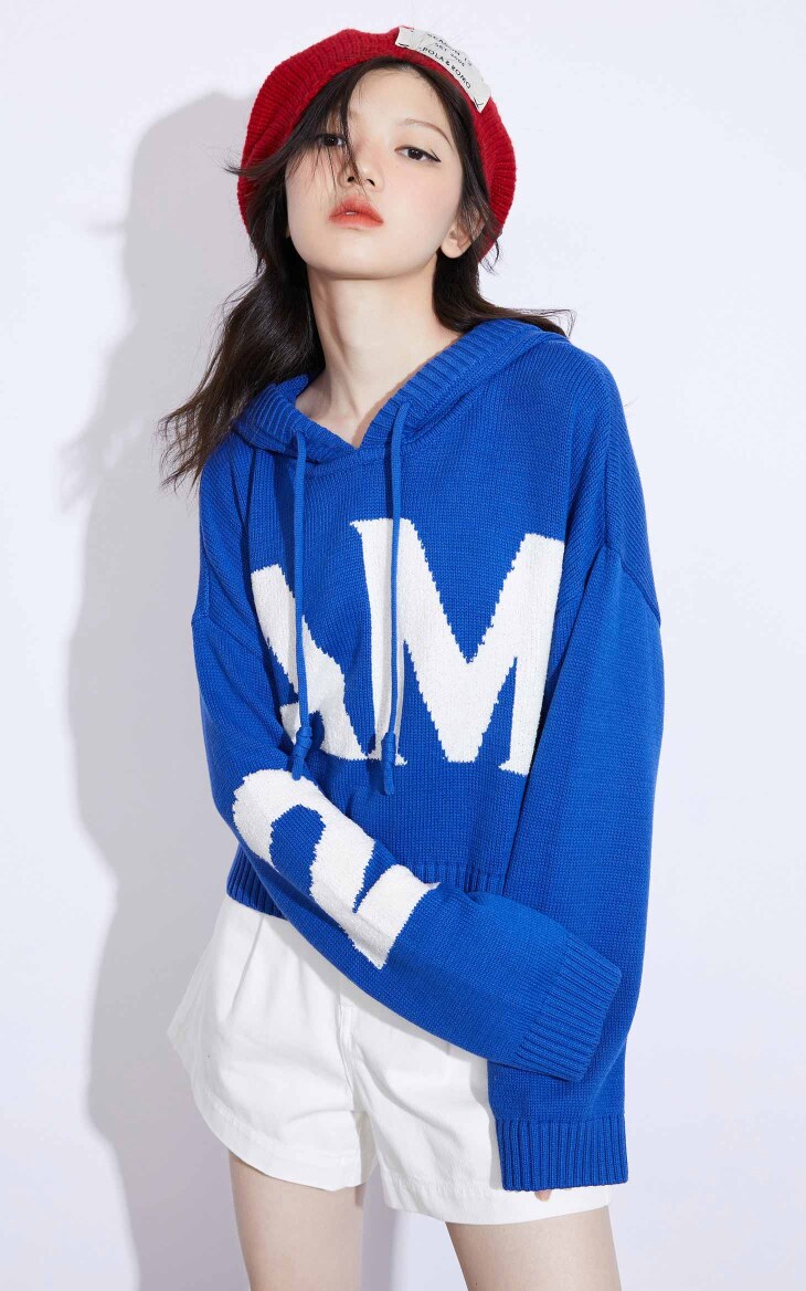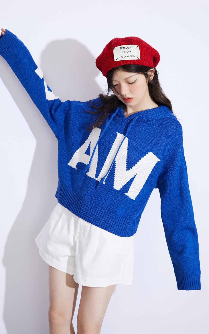 Весенний модный короткий трикотажный свитер с капюшоном, на шнурках