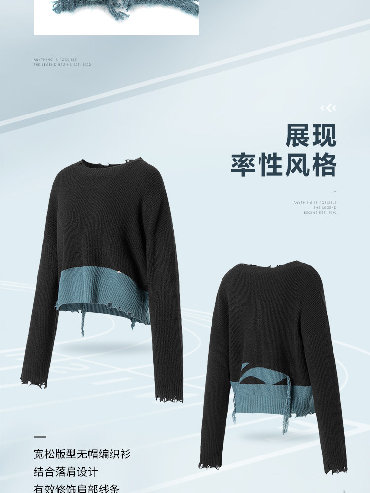 Li Ning, плетеный модный трендовый спортивный свитер, свитшот, лонгслив