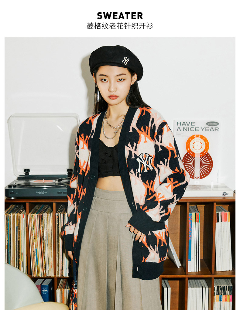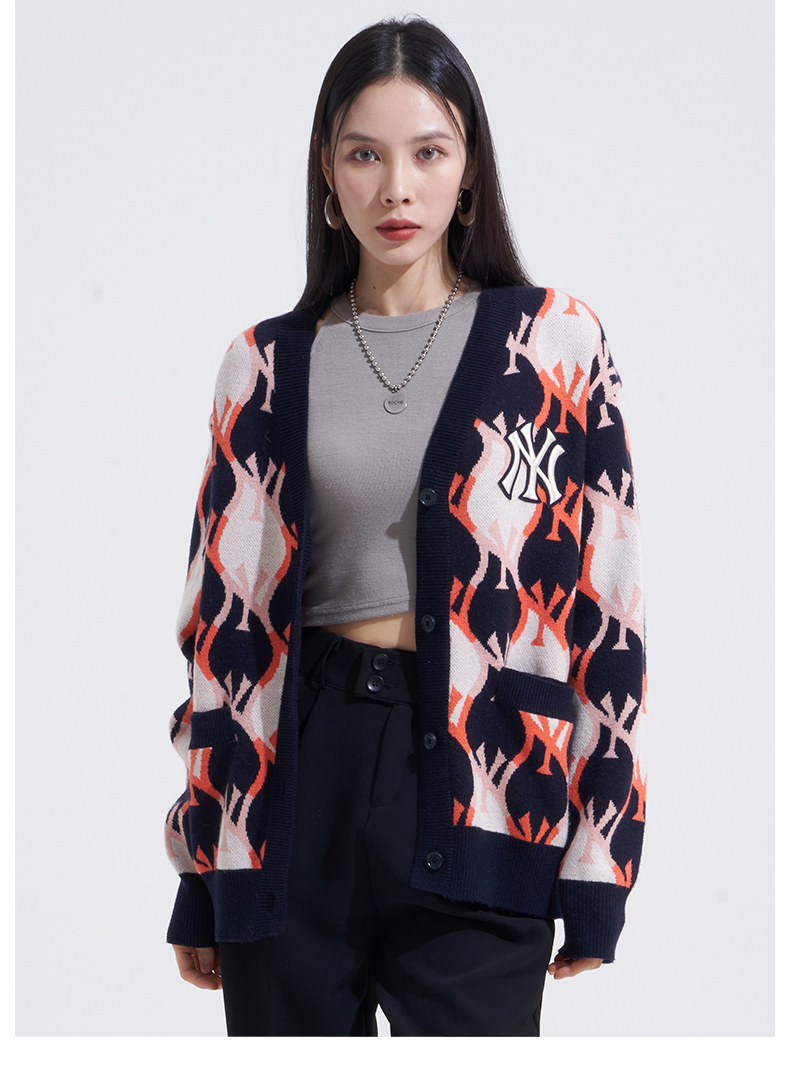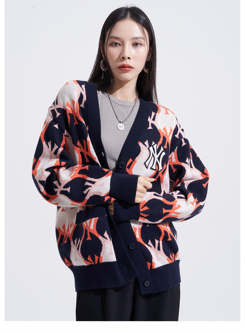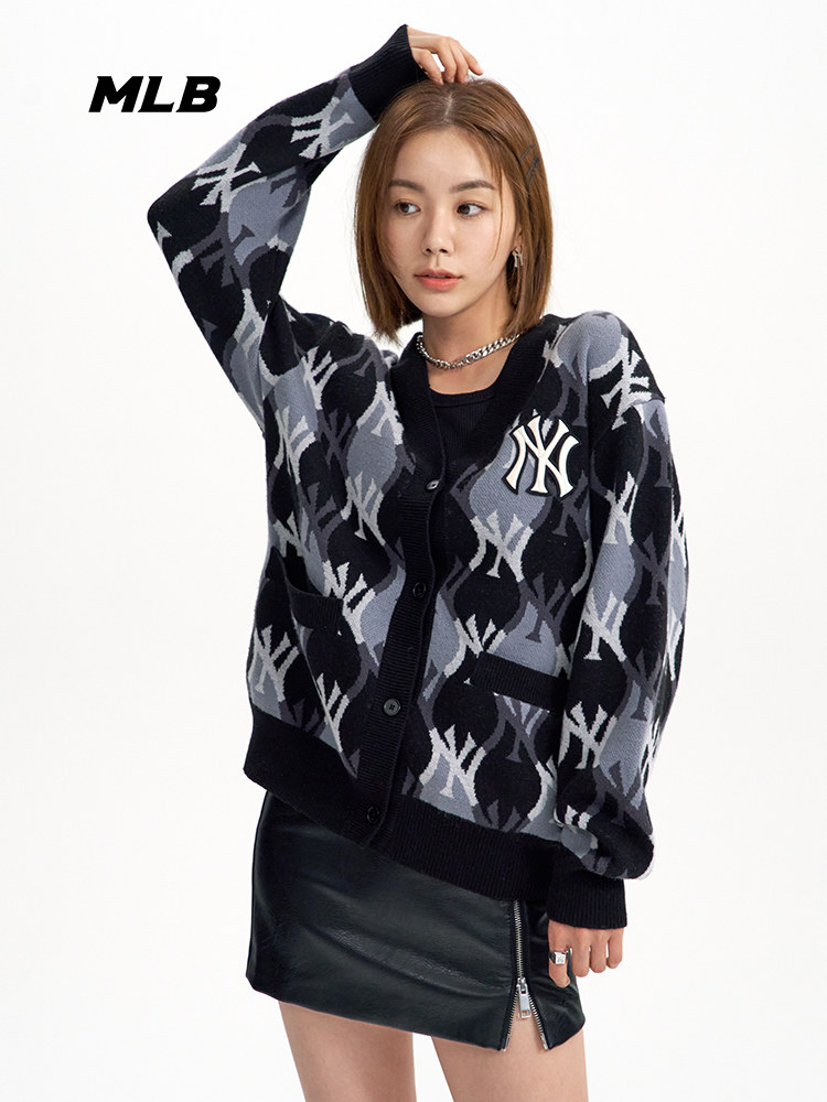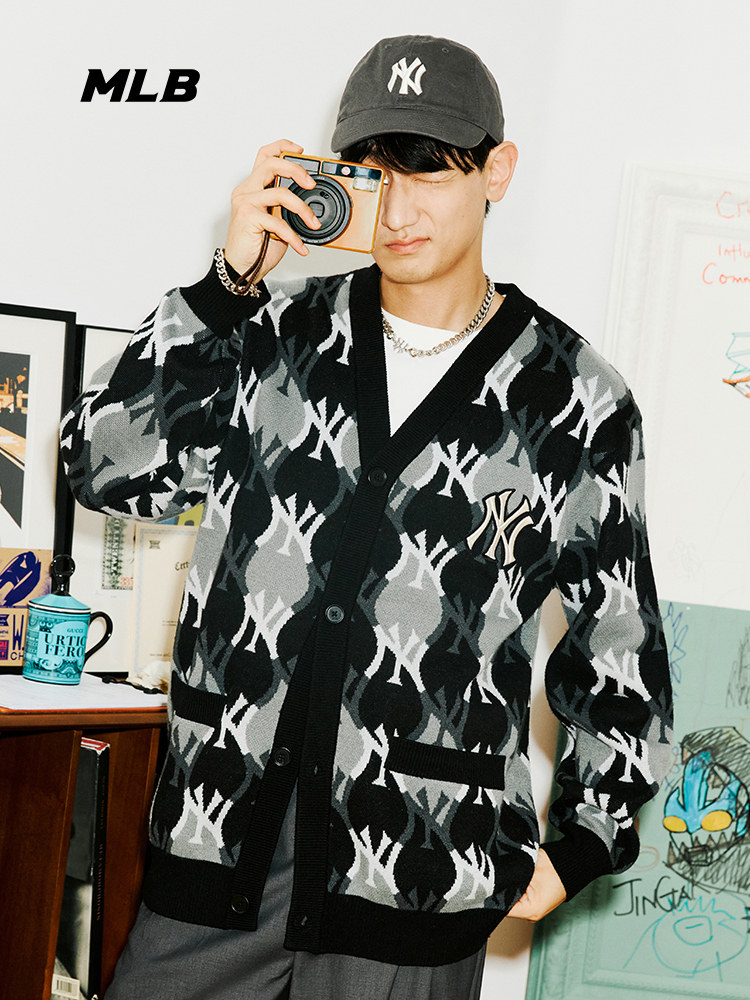 MLB Кардиган подходит для мужчин и женщин для влюбленных с ромбовидным узором, куртка для отдыха