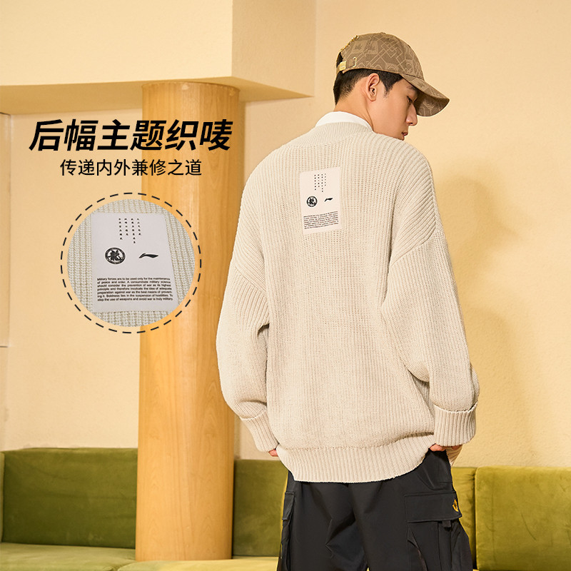 Li Ning, плетеный зимний спортивный модный свитер, свободный крой, оверсайз