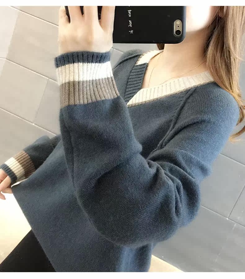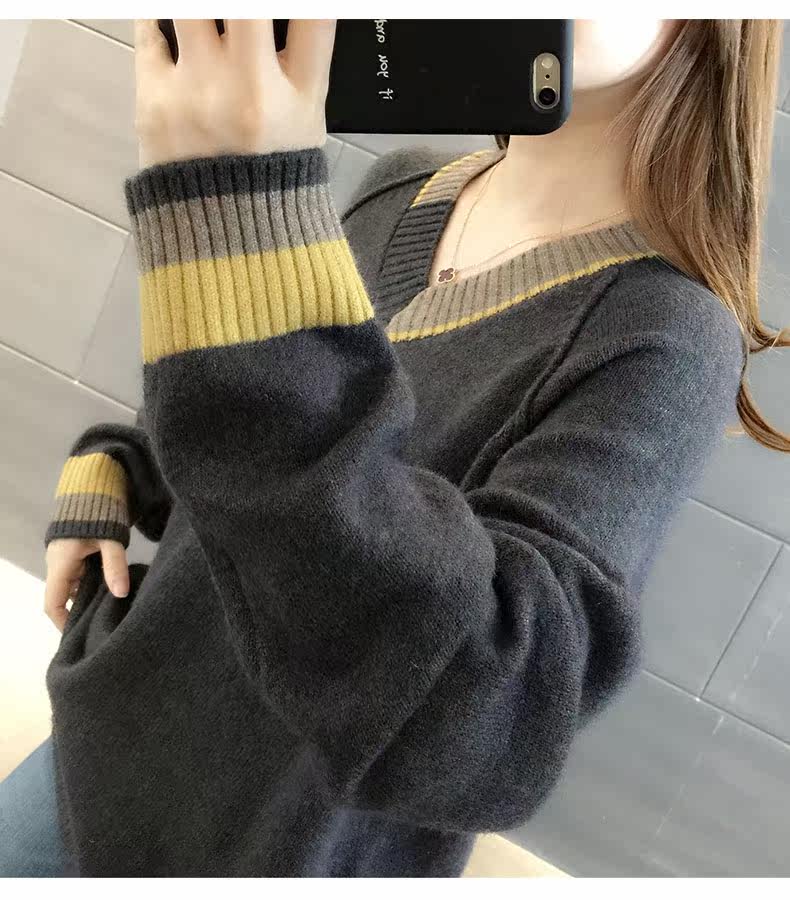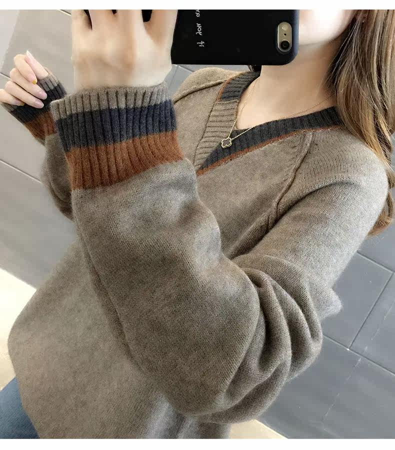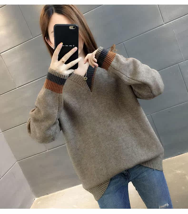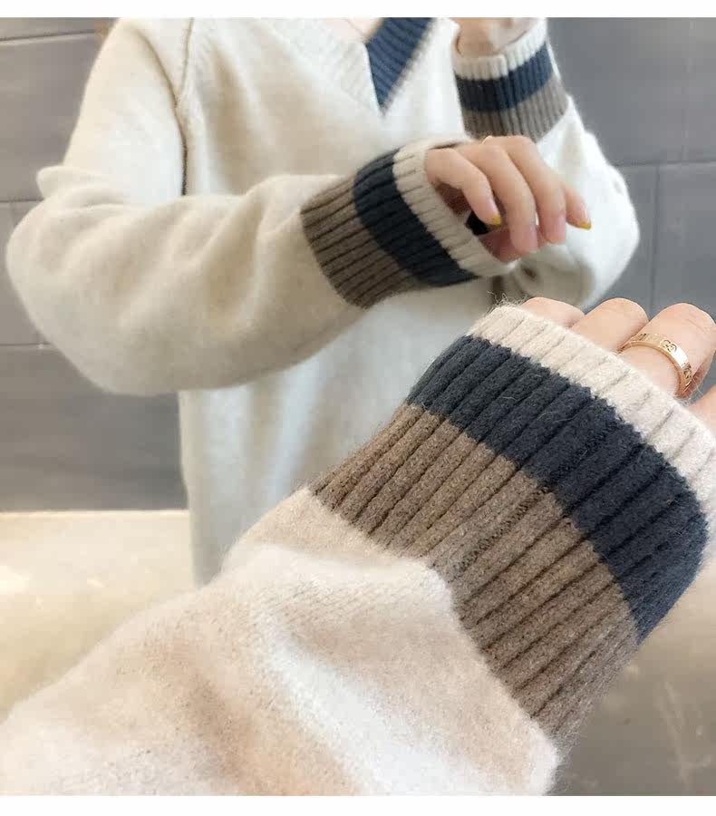 Весенний осенний трикотажный приятный телу свитер, V-образный вырез, оверсайз, в западном стиле