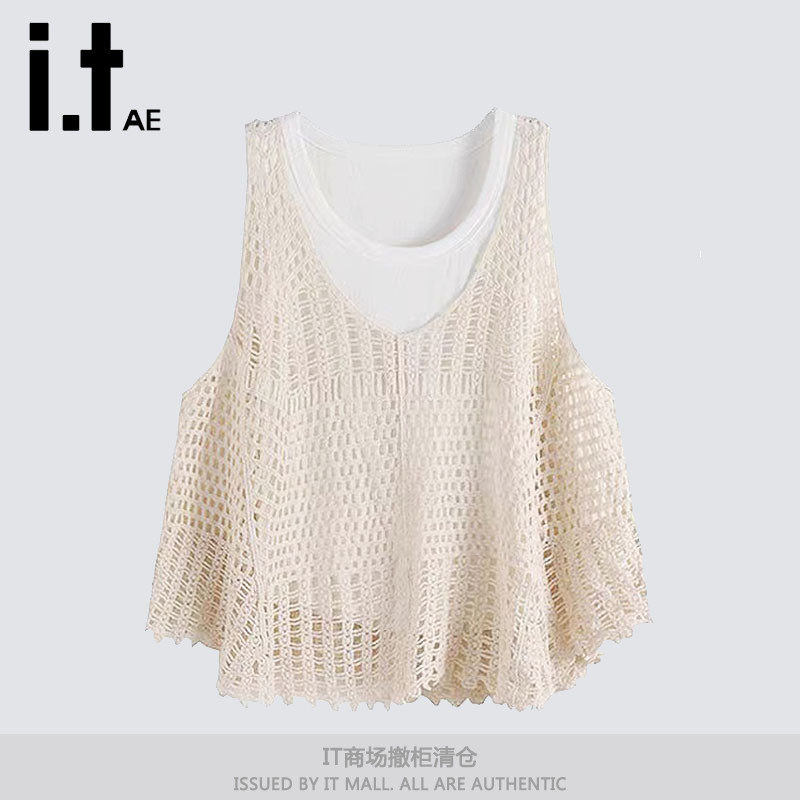 Трикотажный жилет, белая майка топ, комплект