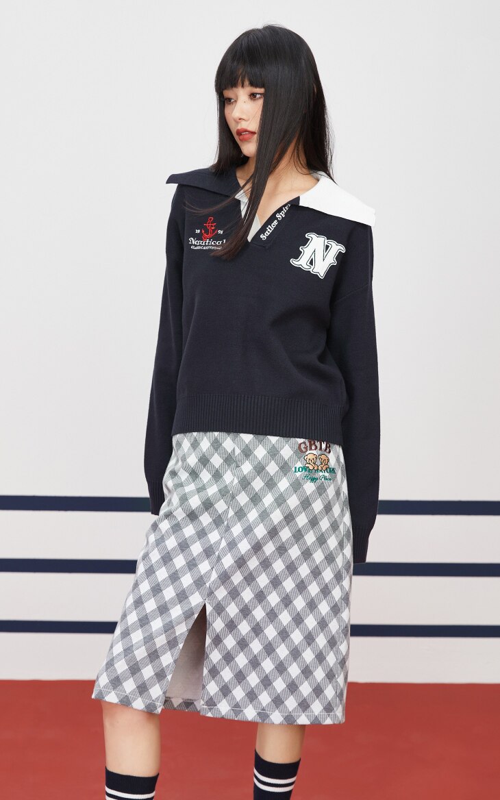 Зимний модный трендовый трикотажный свитер, 2022, V-образный вырез, с вышивкой
