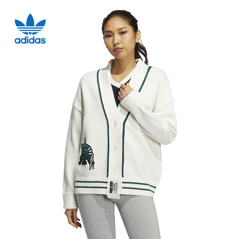 Adidas, белая трикотажная осенняя куртка, комплект, ретро кардиган, свитер