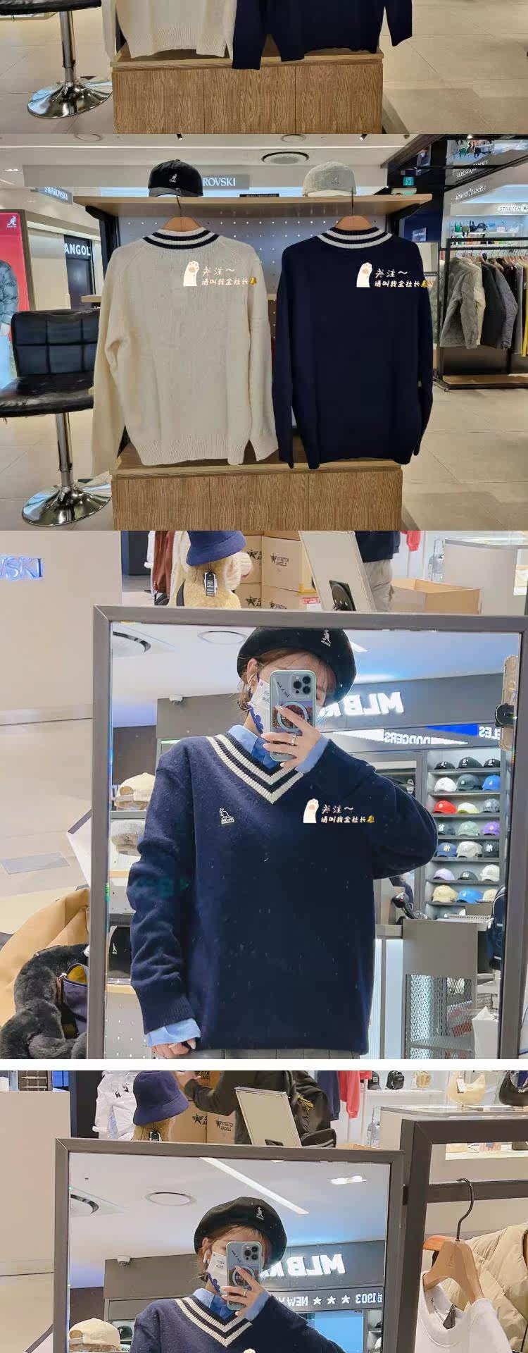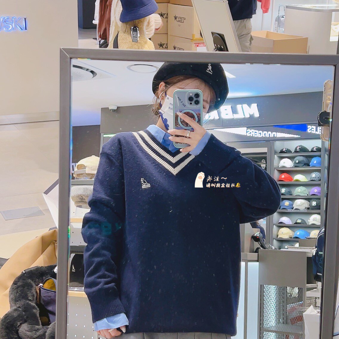Кенгуру, шерстяной свитер, 2022 года, в корейском стиле, V-образный вырез