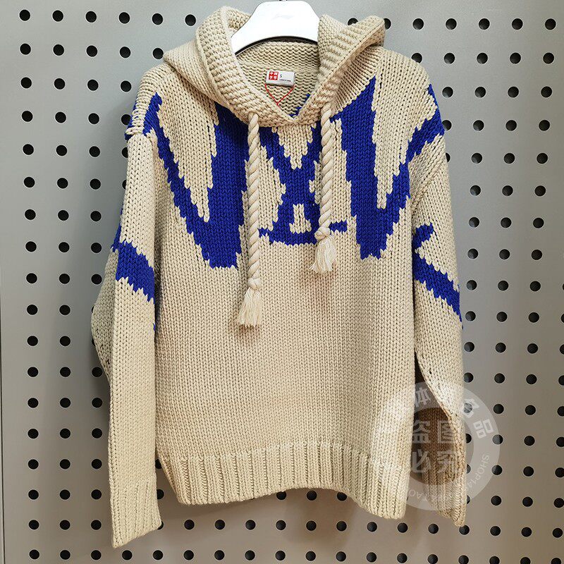 Li Ning, зимний комфортный плетеный свитер для отдыха с капюшоном, 2022, оверсайз