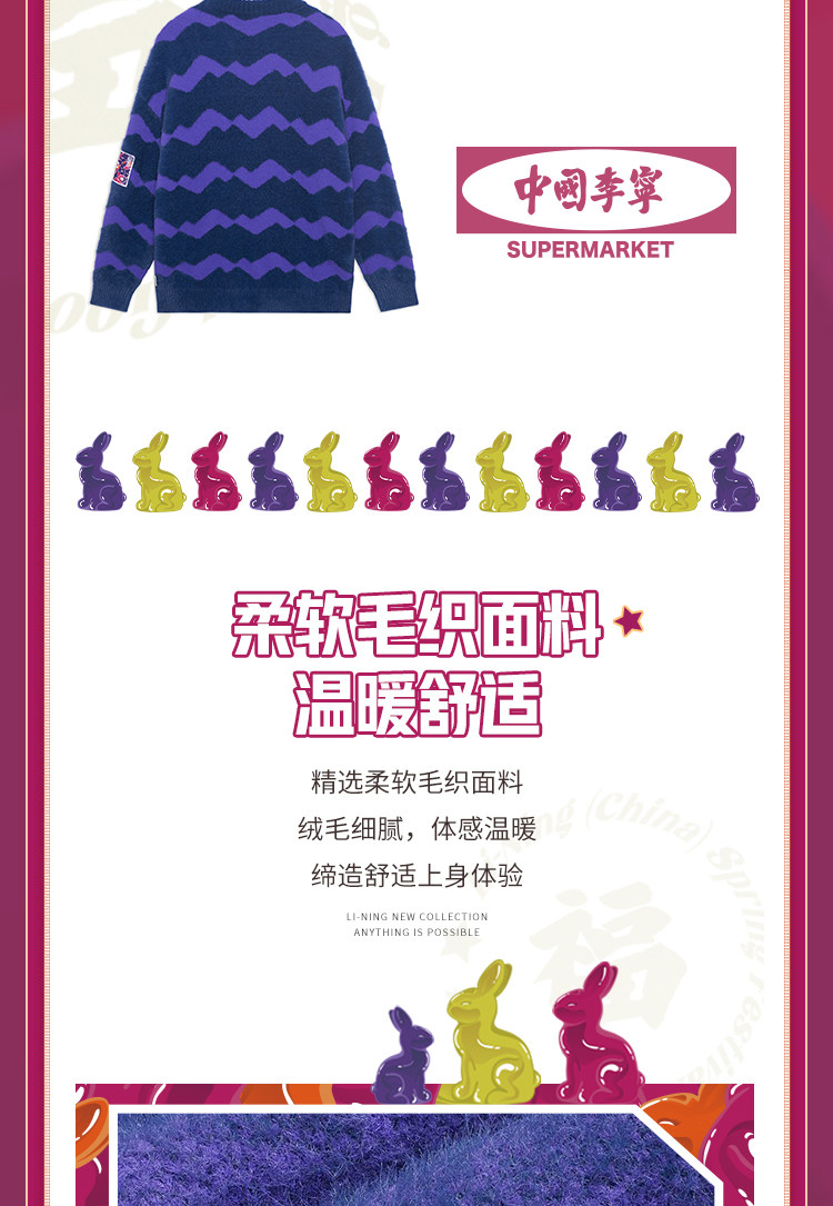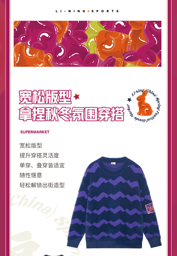 Li Ning, плетеный свитер подходит для мужчин и женщин, весенний спортивный костюм для влюбленных, оверсайз
