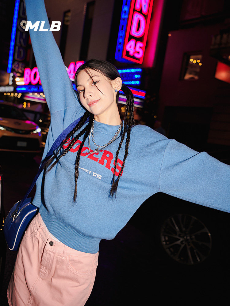 MLB Осенний свитер подходит для мужчин и женщин для влюбленных с круглым воротником для отдыха, оверсайз