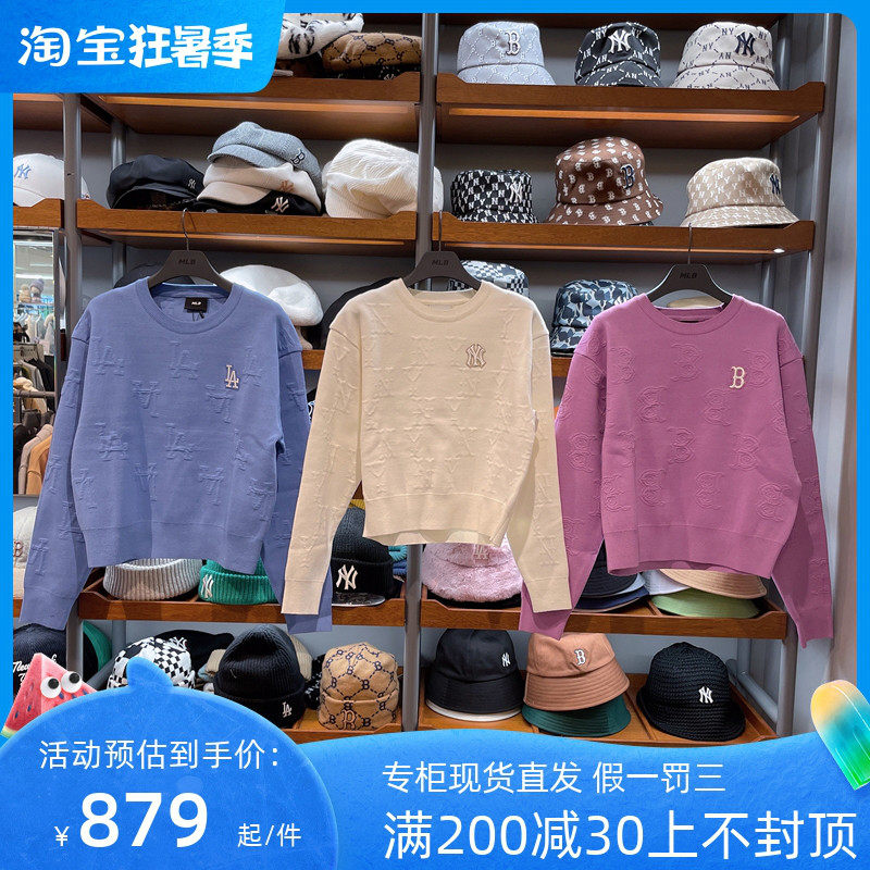 MLB, осенний трикотажный свитер, толстовка с круглым воротником, (в наличии на складе), с вышивкой