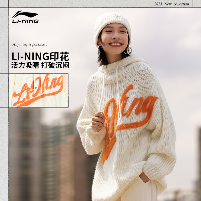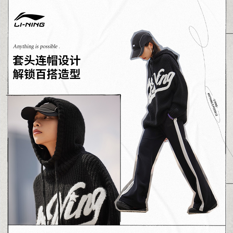 Li Ning, плетеный свитер с капюшоном, демисезонный спортивный костюм, лонгслив, свободный крой
