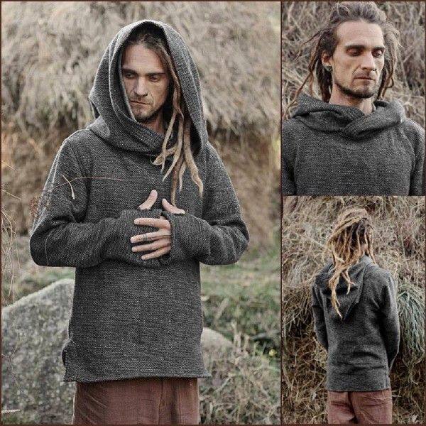 Новые мужчины средневековой теплый с длинным рукавом капюшона Vintage h