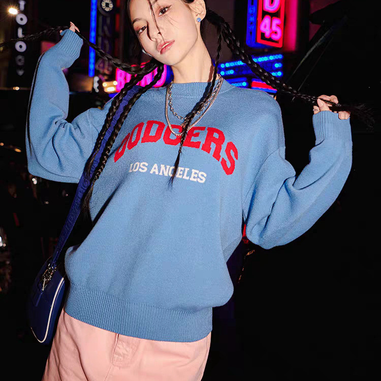 MLB, трикотажный свитер с круглым воротником для влюбленных, коллекция 2023, оверсайз