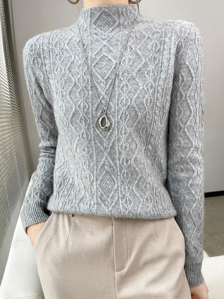 Кашемировый шерстяной базовый приятный телу цветной трикотажный демисезонный свитер, высокий воротник