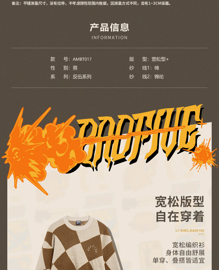 Lining/李宁 Подлинный обратный неприятный случай случайный круглый круглый ошейный свитер Ambt017 Ambt017