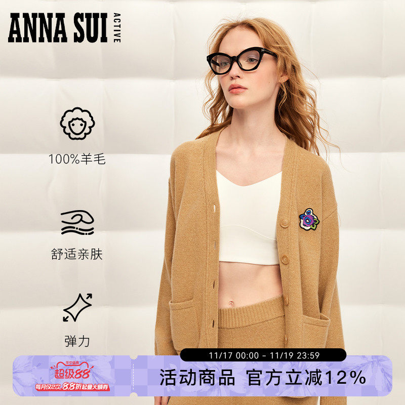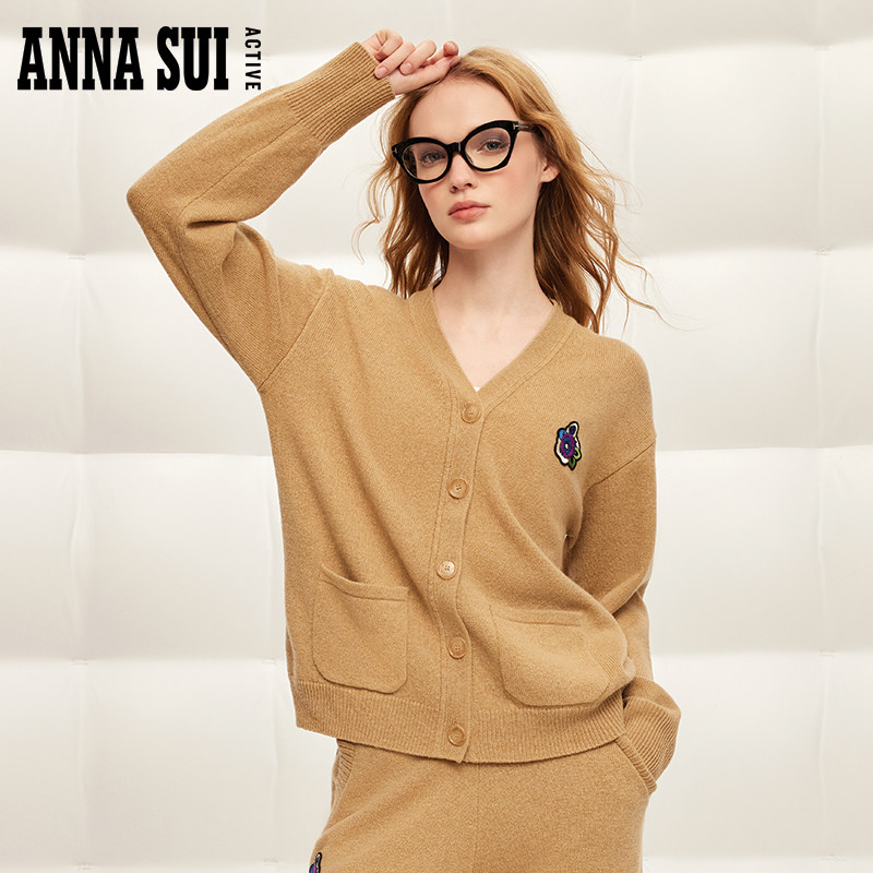 Anna sui, спортивный классический шерстяной трикотажный кардиган, свитер, с вышивкой