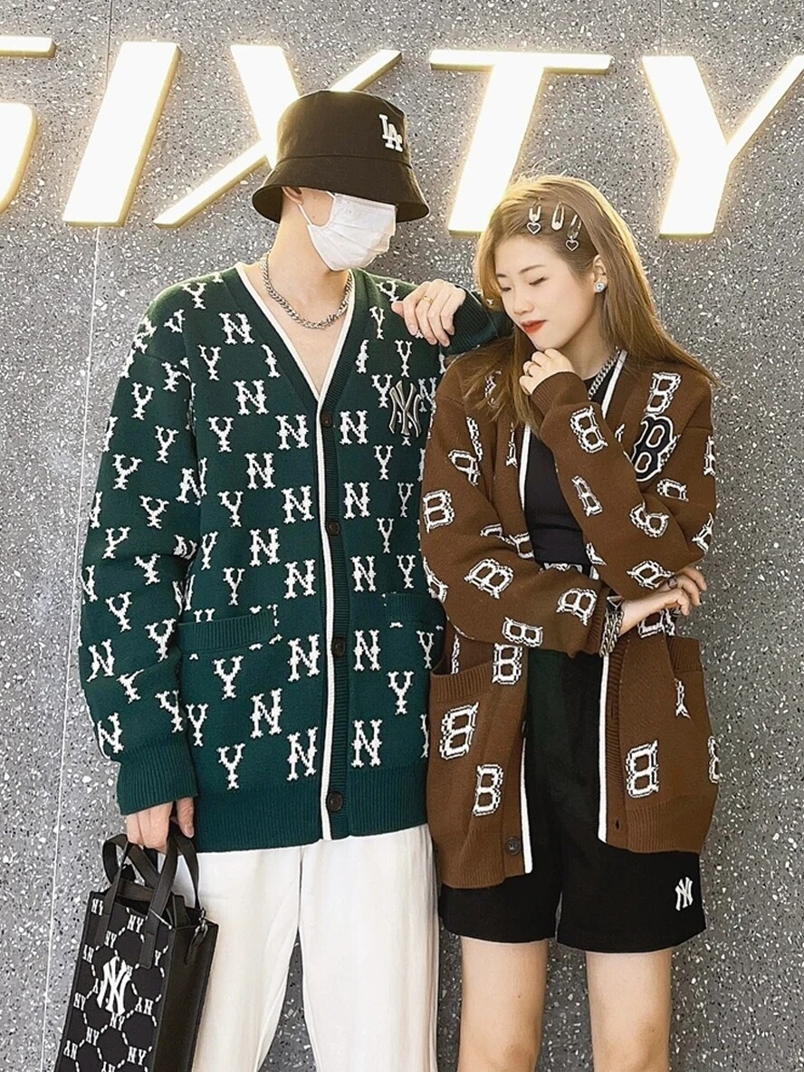 MLB, кардиган, рубашка, ретро свитер для влюбленных, куртка