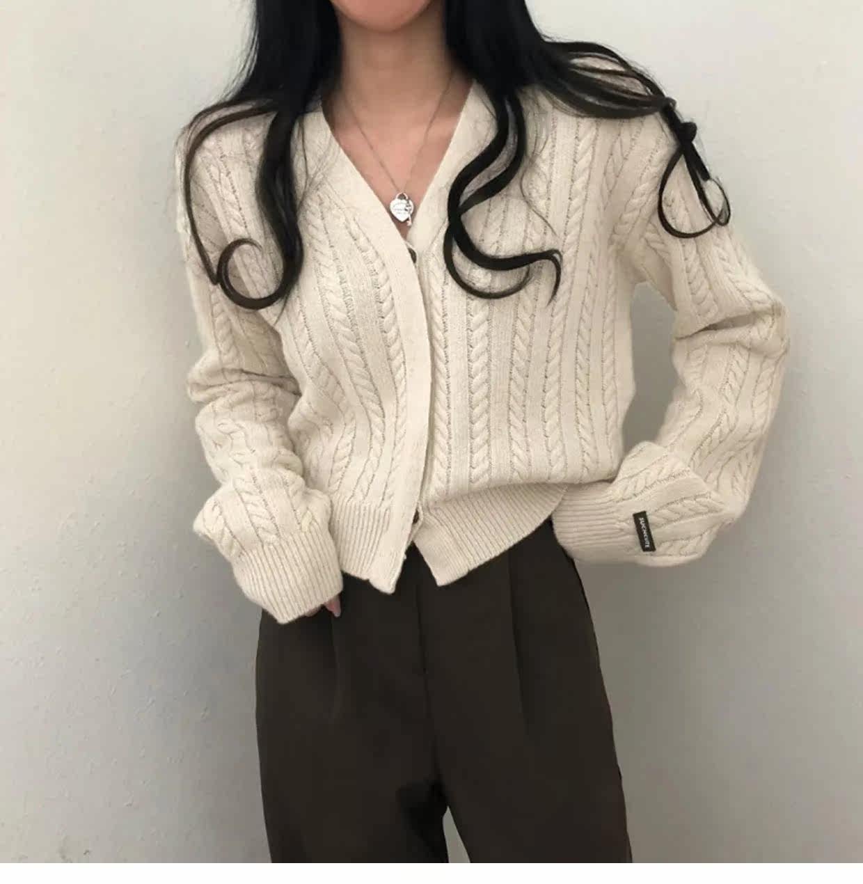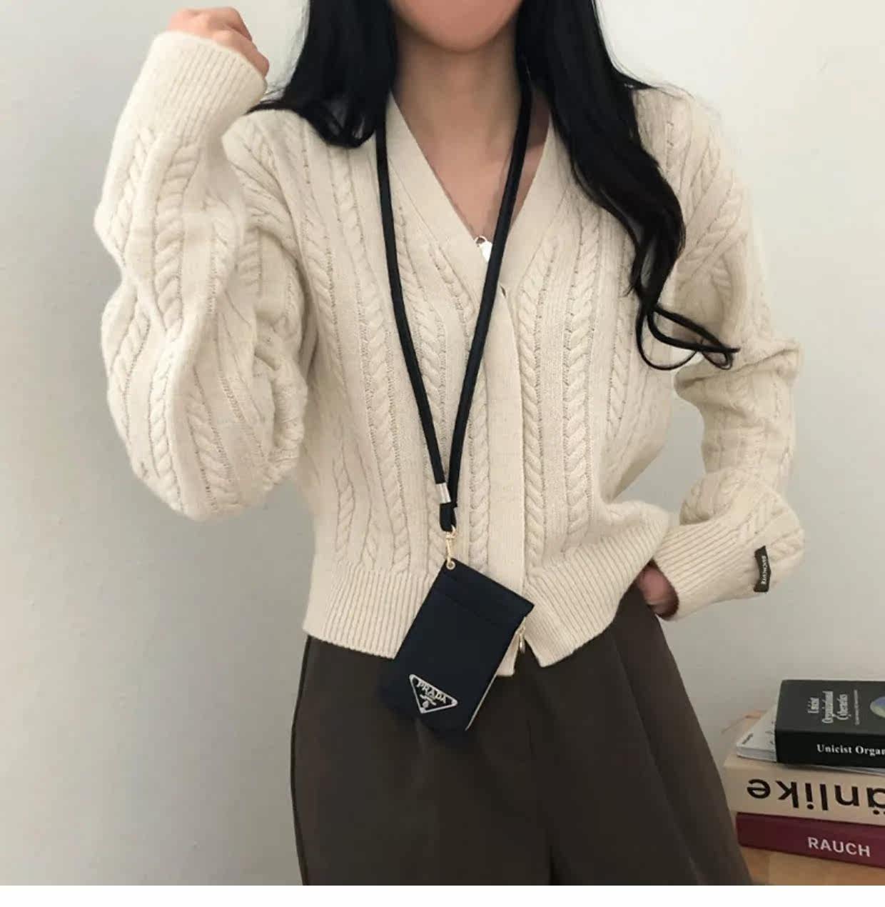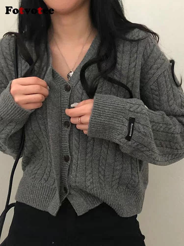 Свитера Fotvotee для женщин вязаный свитер серый кардиган Корея