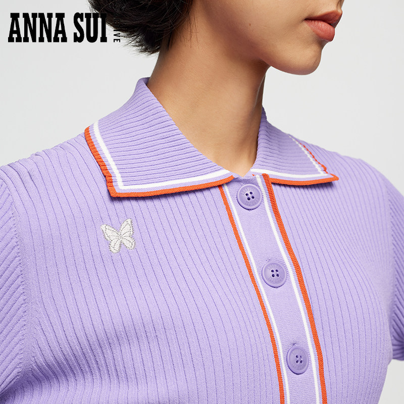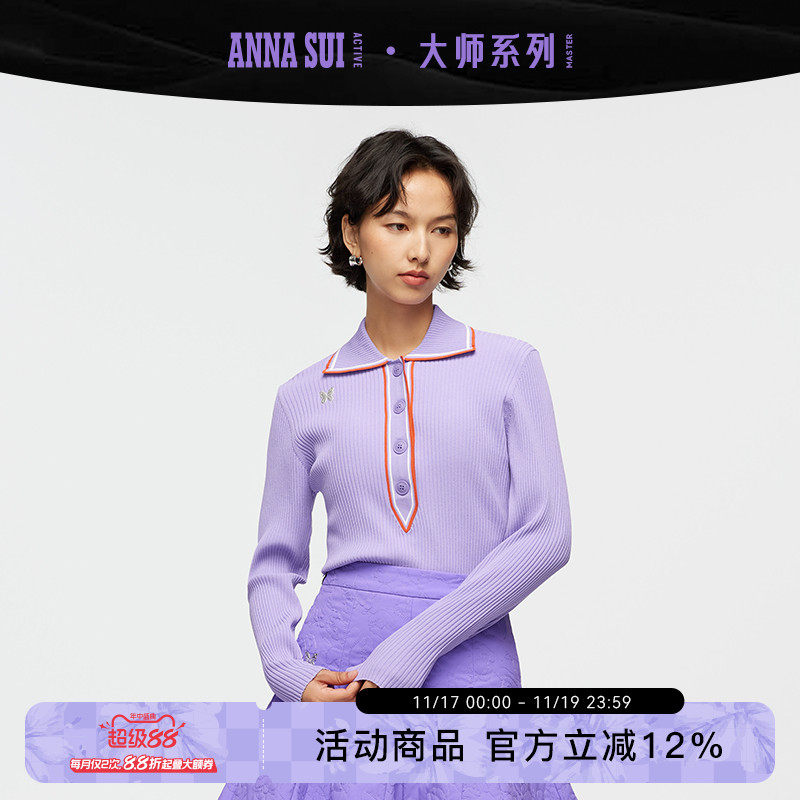 ANNA SUI Anna Sui Sports Master Series Тонкий свитер контрастного цвета в стиле ретро Пуловер для гольфа