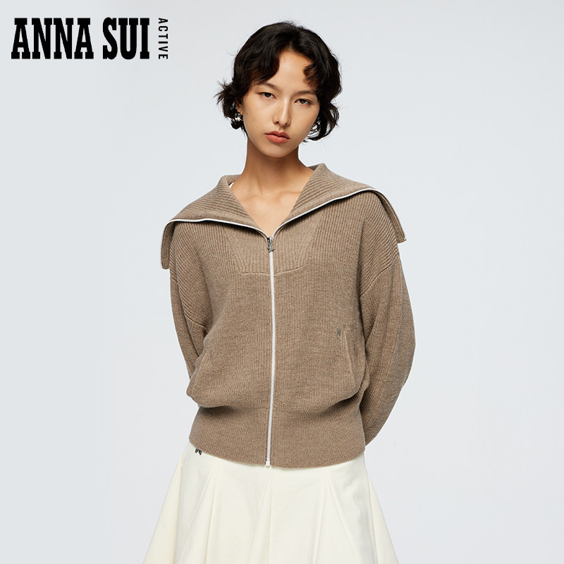 Anna sui, спортивный военно-морской шерстяной кардиган, с печатью вашего логотипа