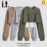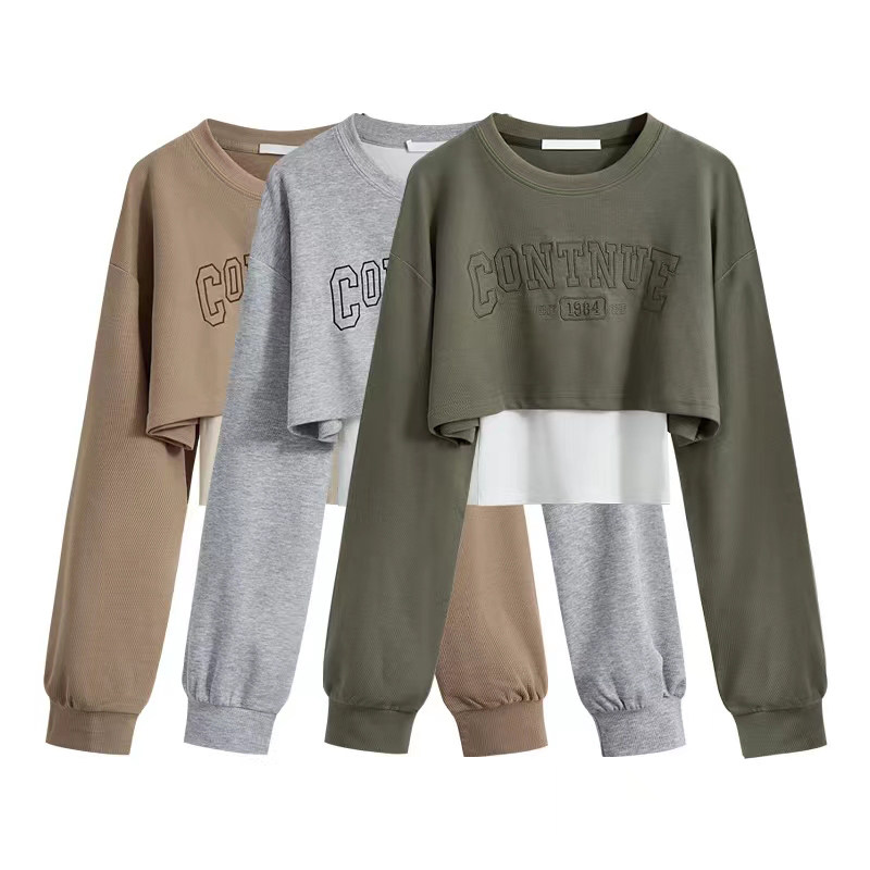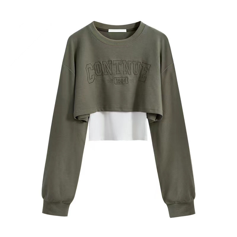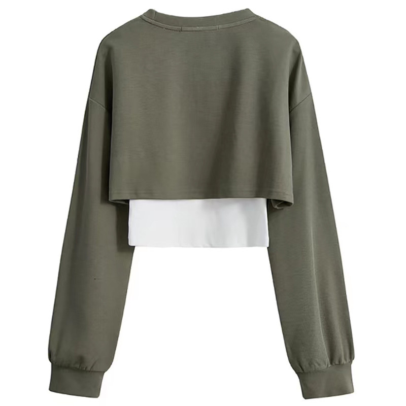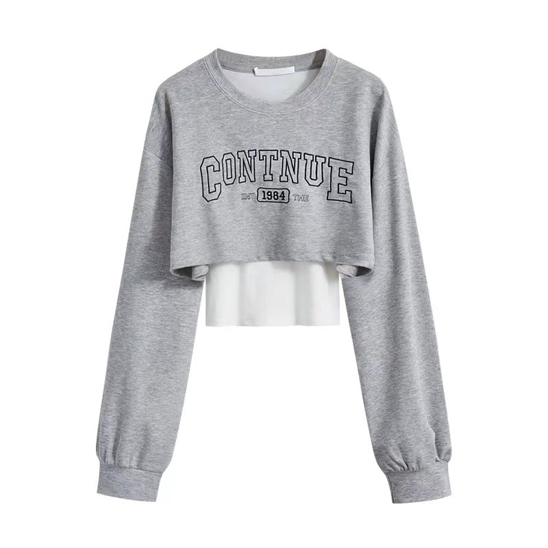 Весенняя толстовка, короткий лонгслив, комплект, топ с чашечками, свободный крой