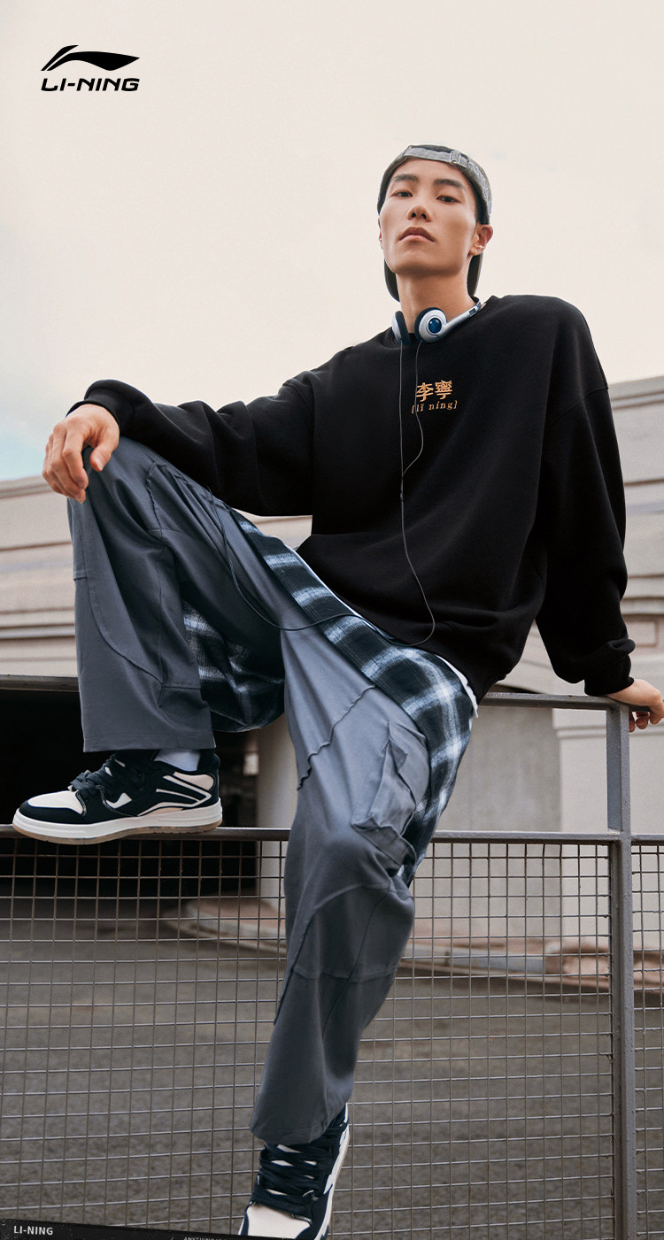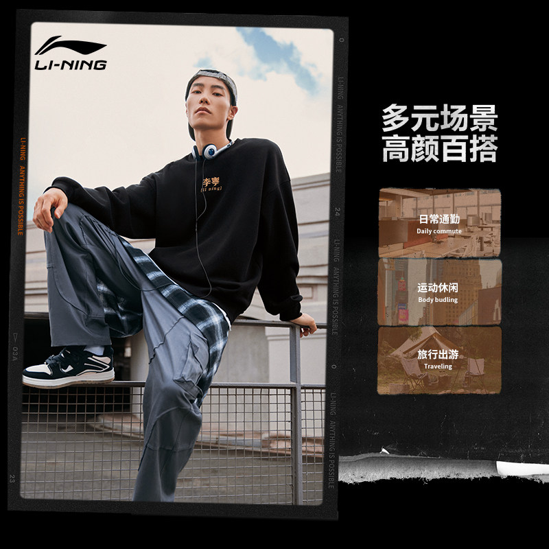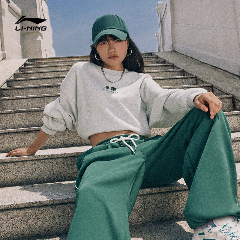 Li Ning, мужская осенняя толстовка для влюбленных, шерстяной лонгслив с круглым воротником, спортивный костюм, оверсайз