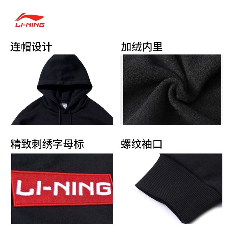 Li Ning, демисезонная осенняя толстовка, комплект с капюшоном для отдыха, спортивный лонгслив, большой размер