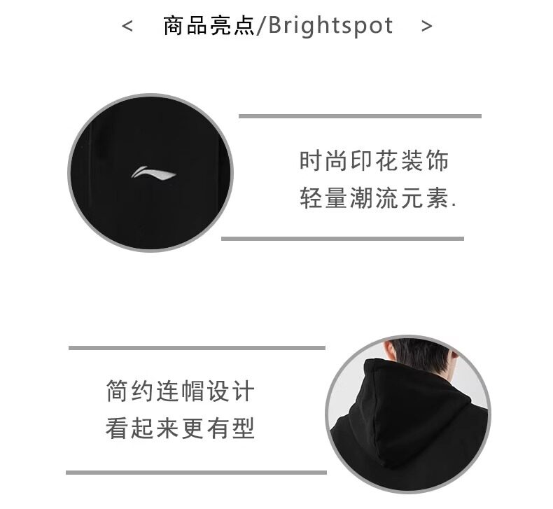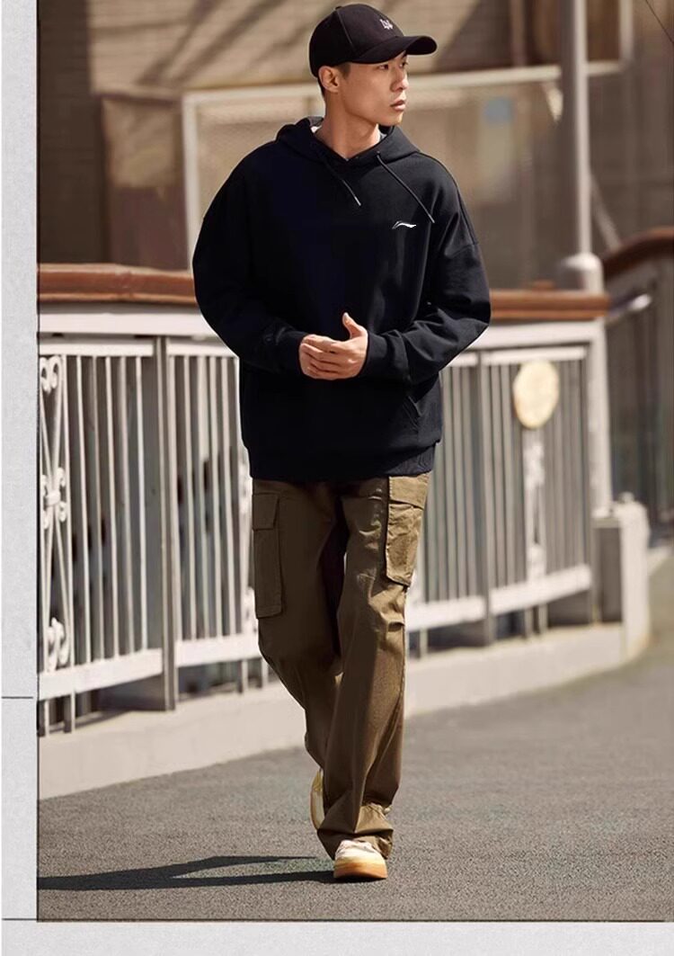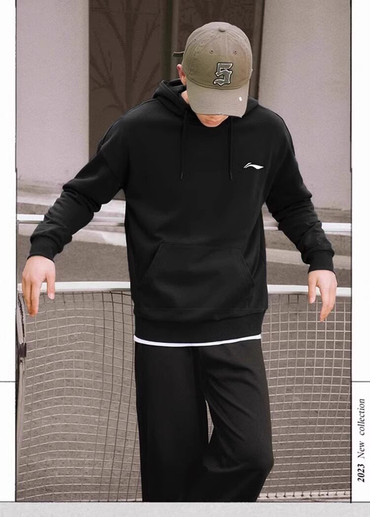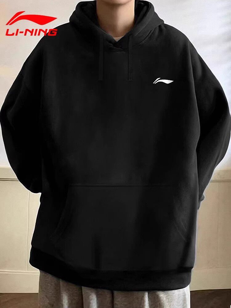 Li Ning, утепленная толстовка, демисезонная толстовка с капюшоном, лонгслив, нарукавники, спортивная куртка, в американском стиле, оверсайз