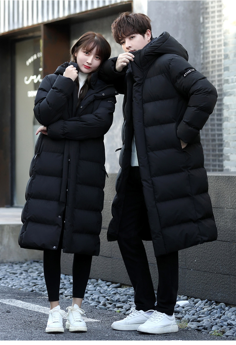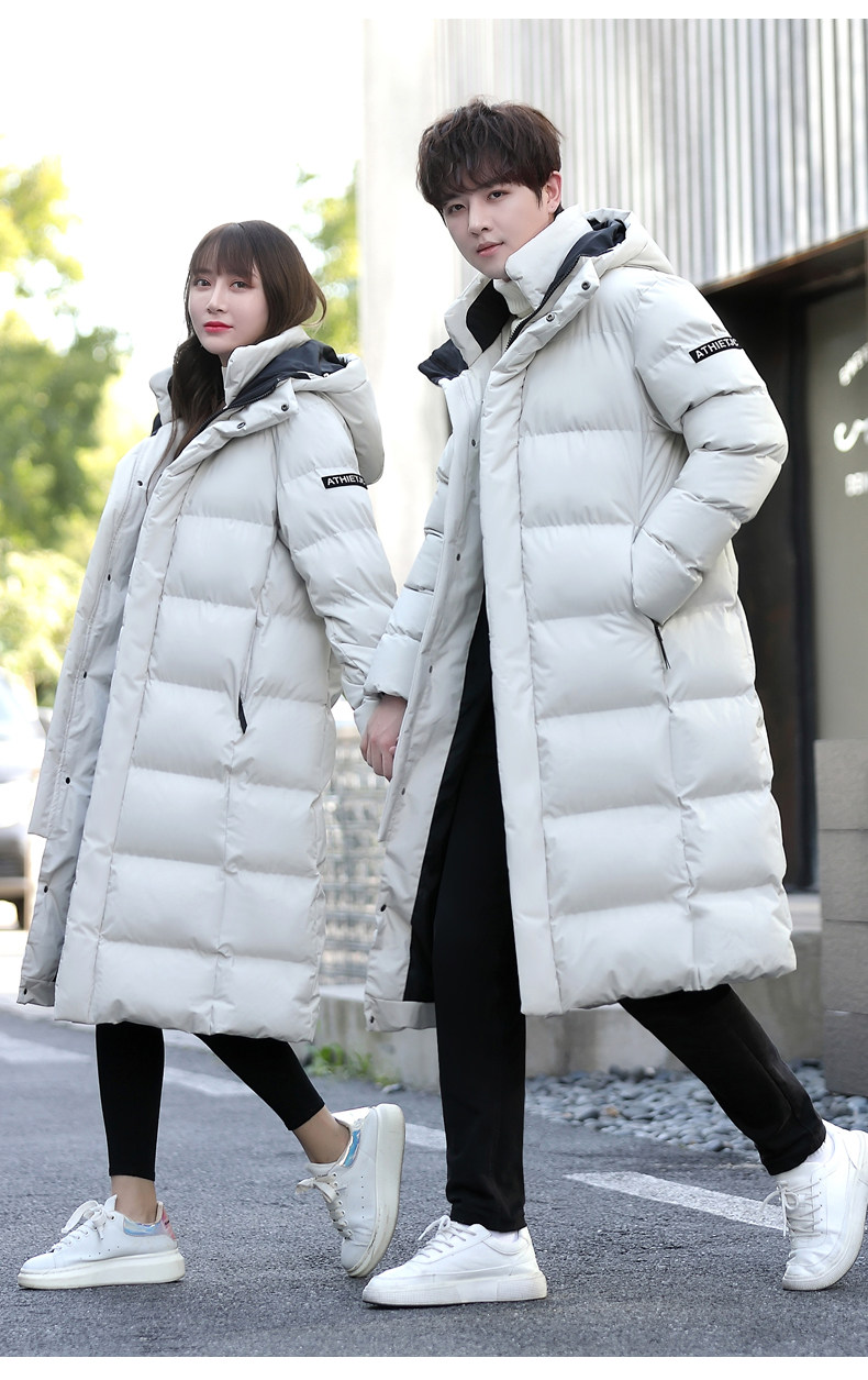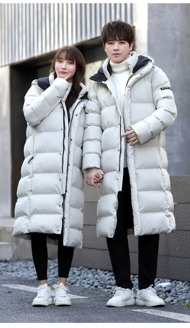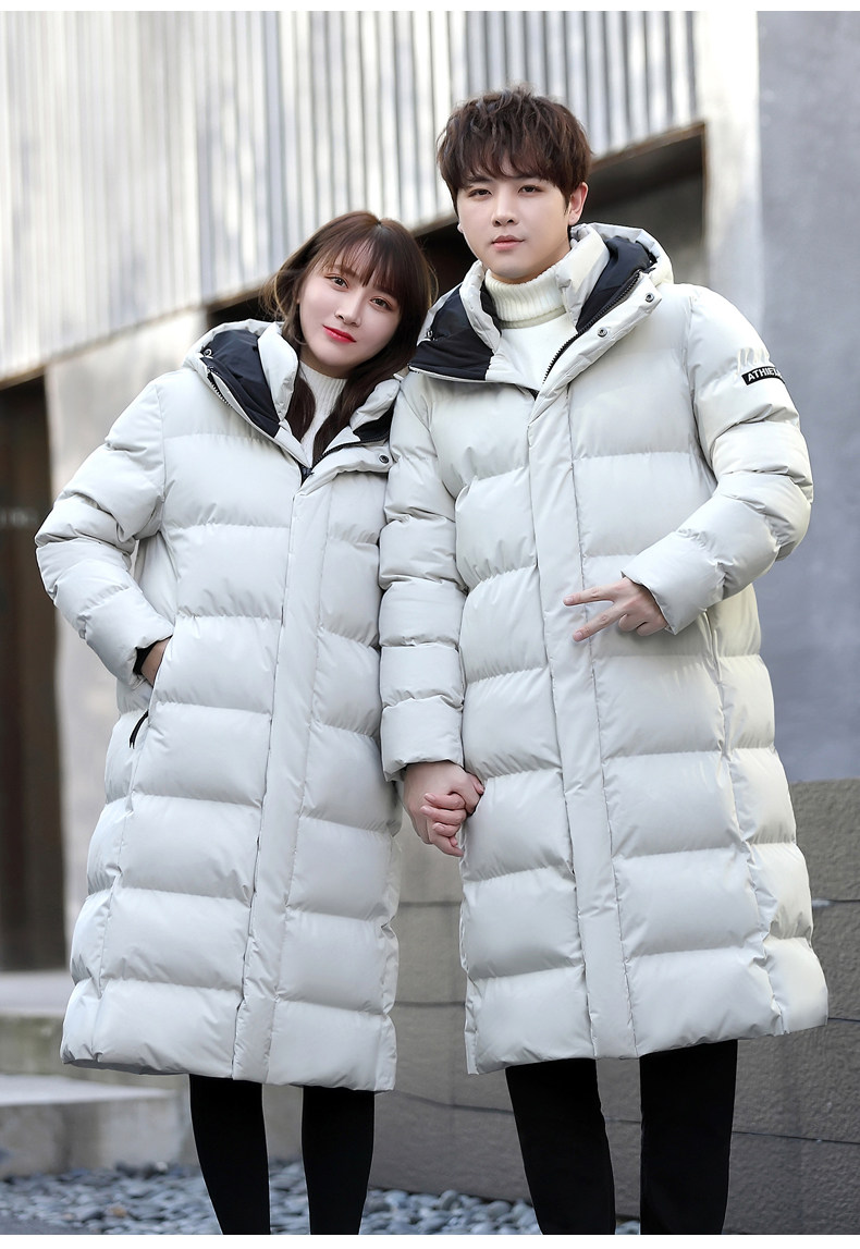 Зимнее утепленное пальто с пухом подходит для мужчин и женщин, длинная парная одежда, пуховик для отдыха, длина макси, для влюбленных