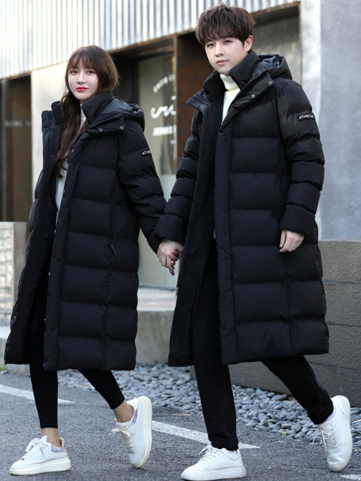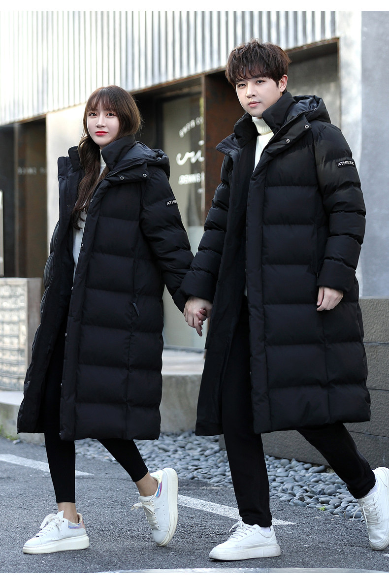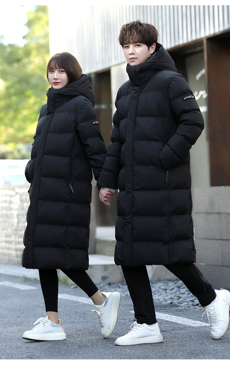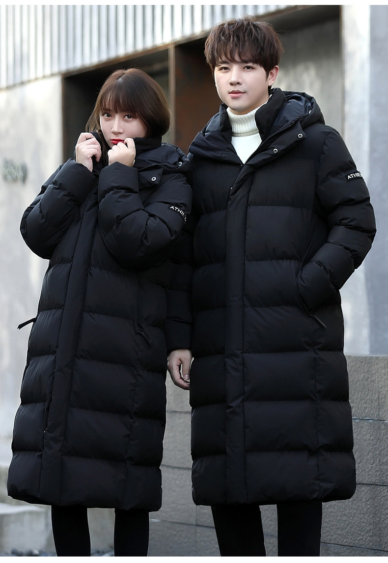 Зимнее утепленное пальто с пухом подходит для мужчин и женщин, длинная парная одежда, пуховик для отдыха, длина макси, для влюбленных