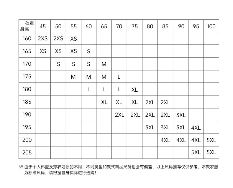 - XXXXL/195 XXXL/190 XXL/185 XL/180