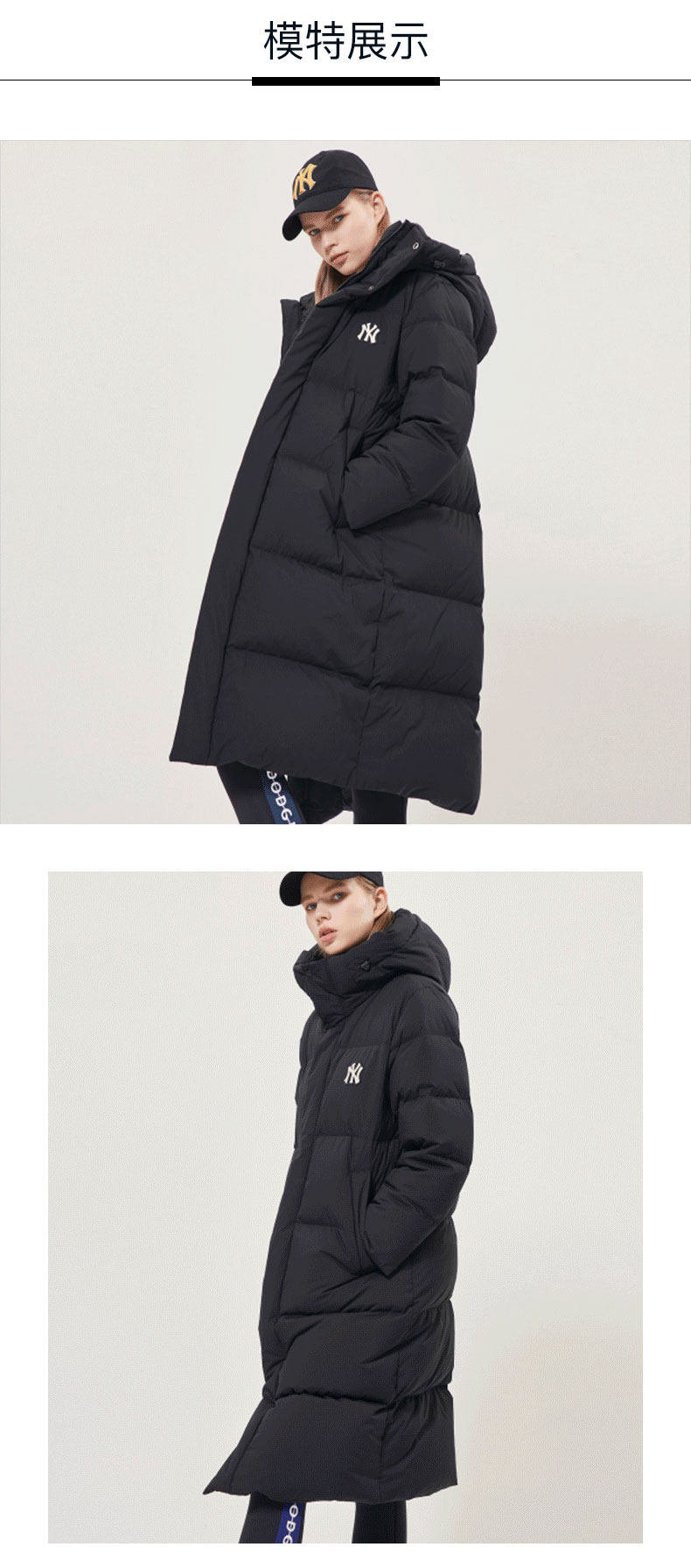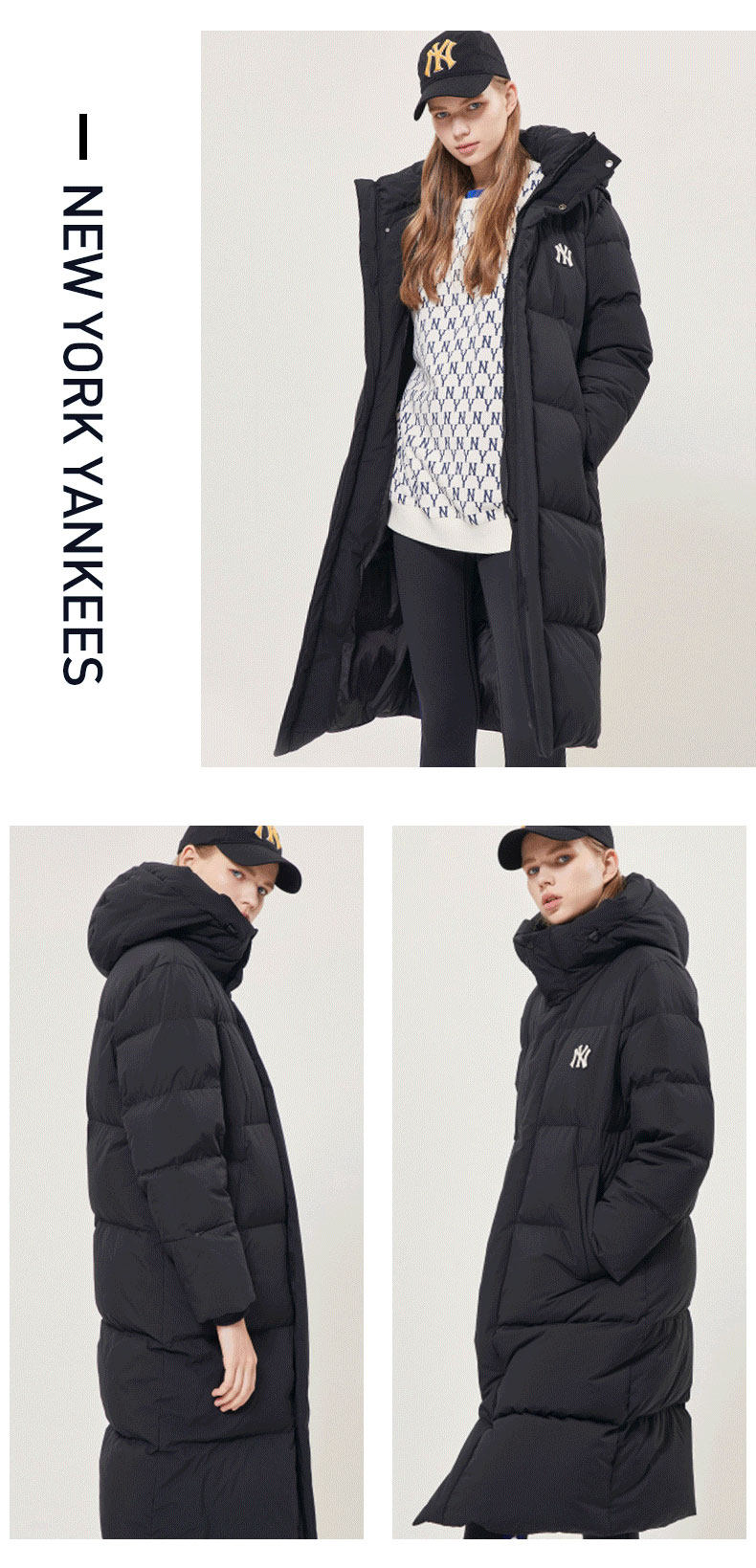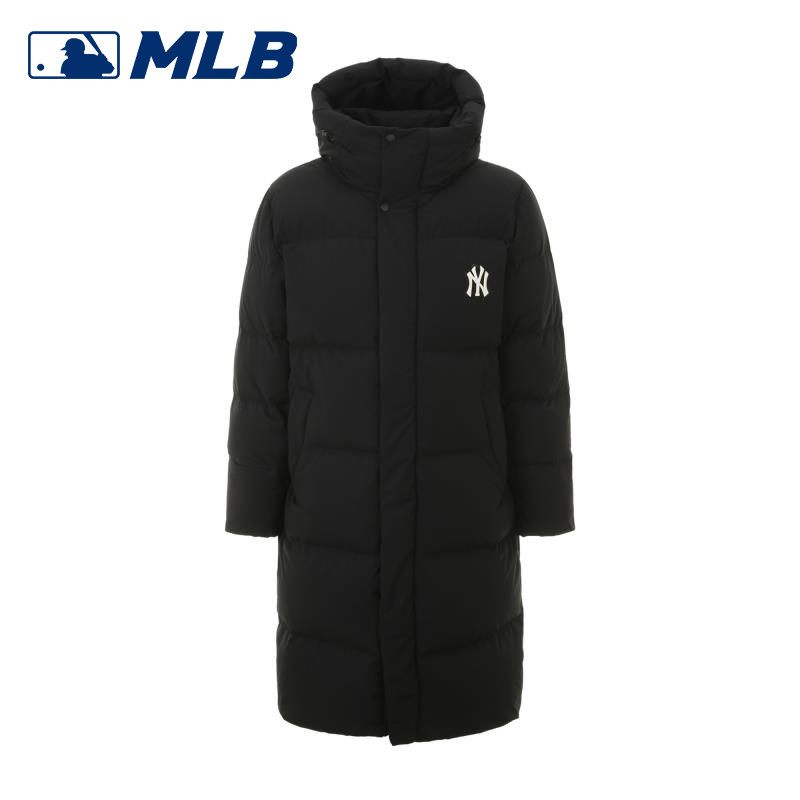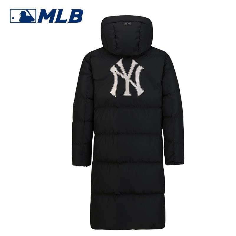 MLB Зимний длинный пуховик подходит для мужчин и женщин с капюшоном, с вышивкой