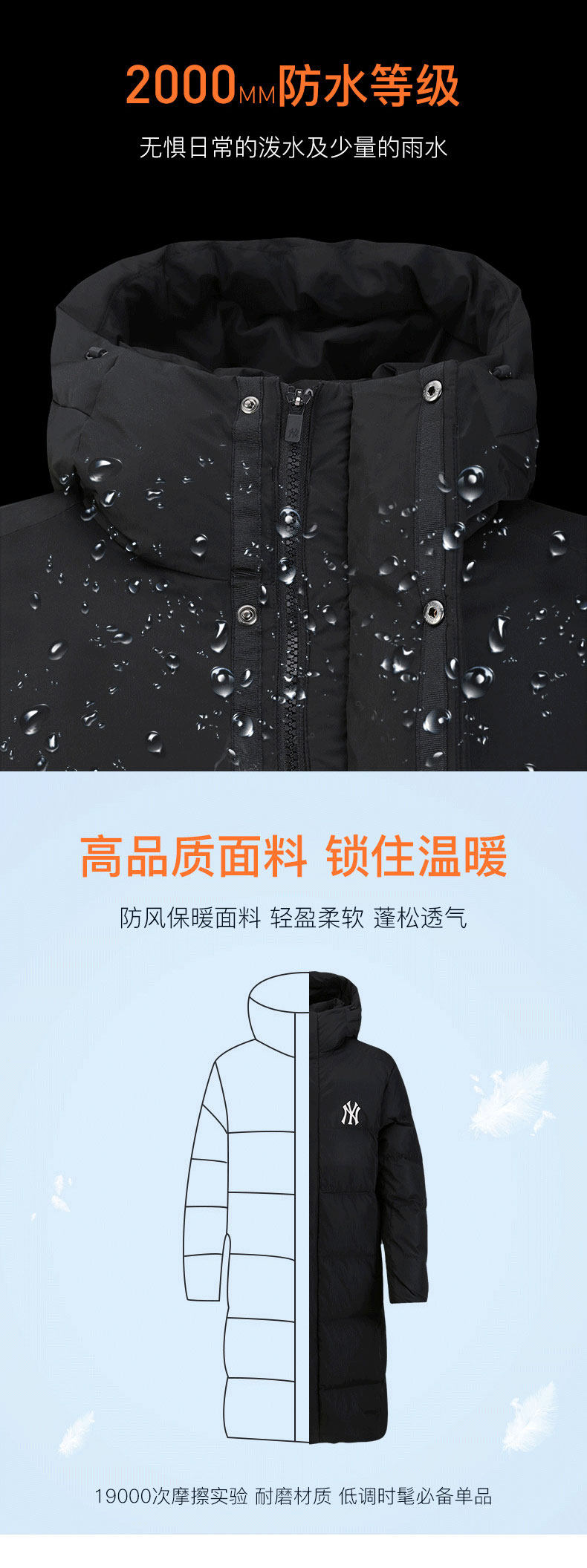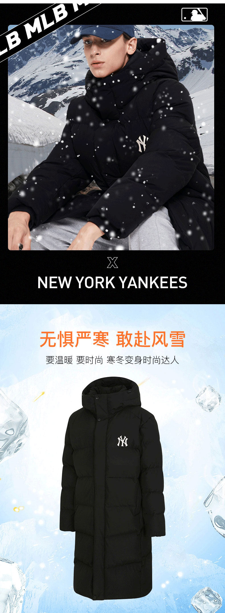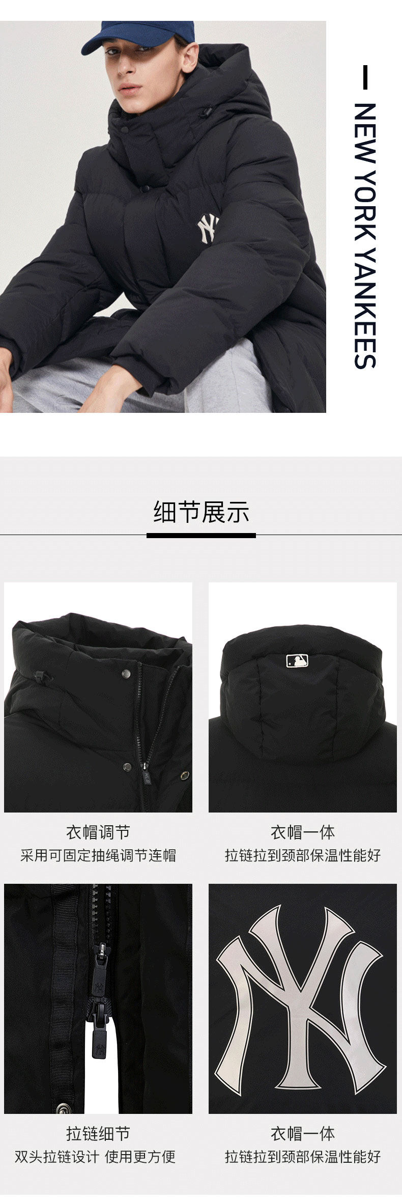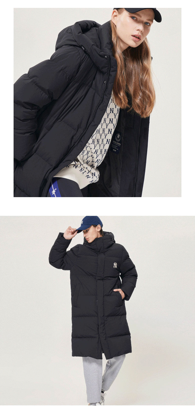 MLB Зимний длинный пуховик подходит для мужчин и женщин с капюшоном, с вышивкой
