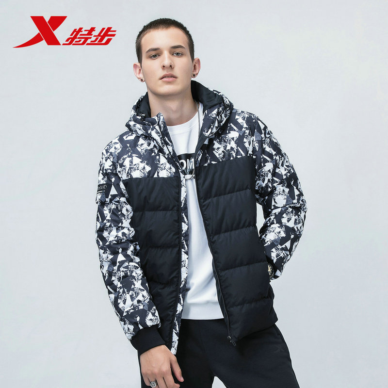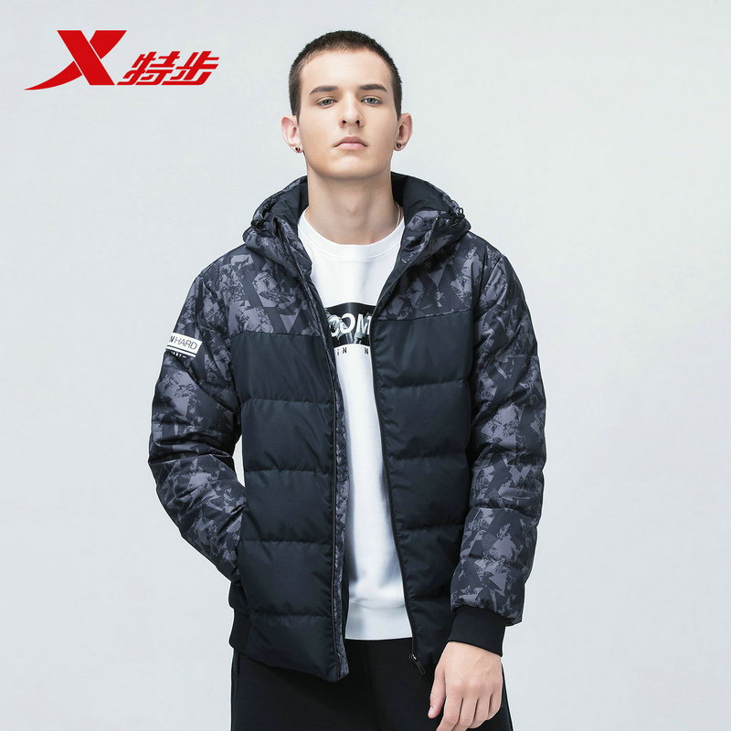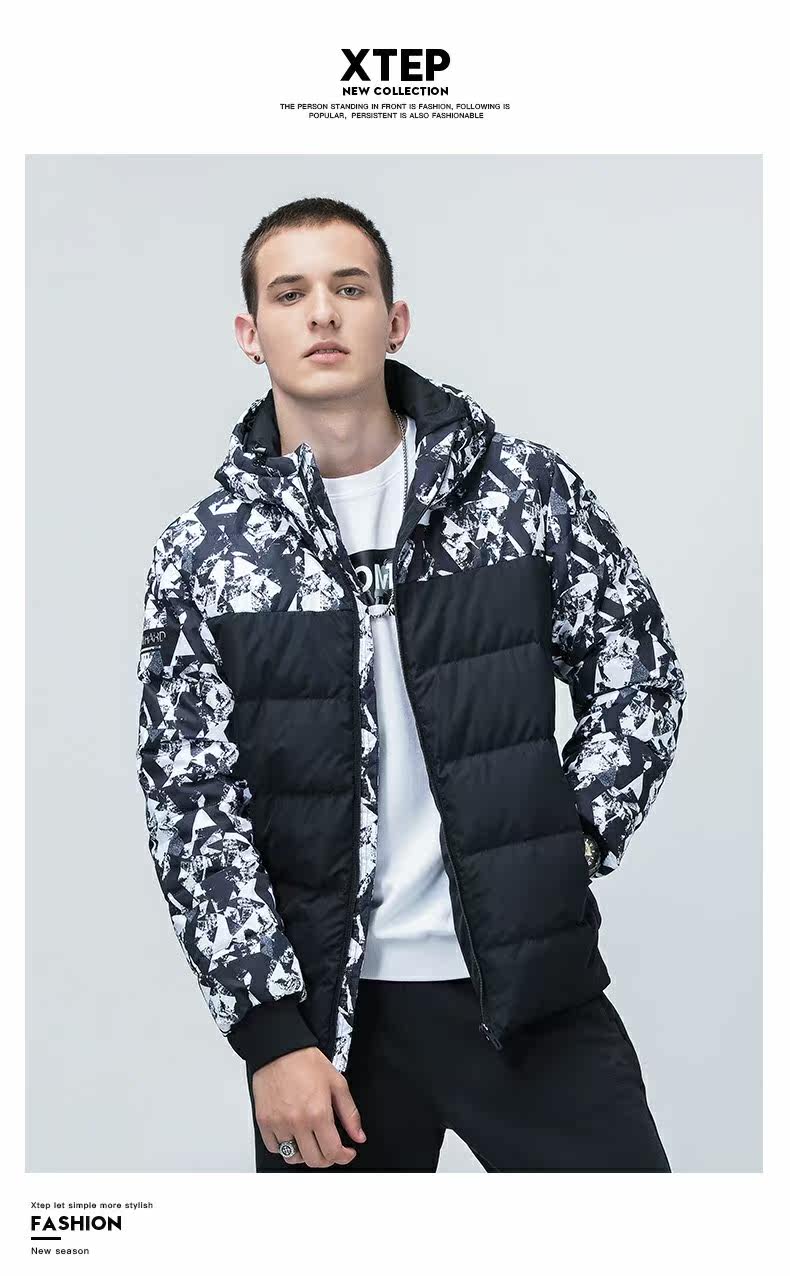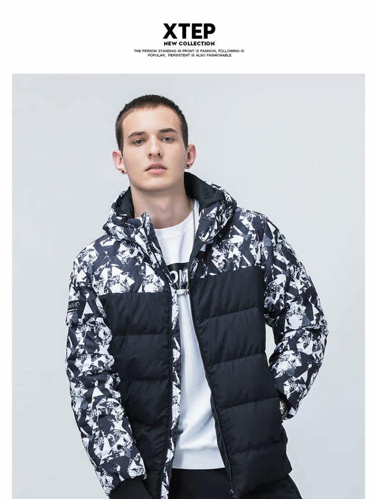 Xtep, короткий пуховик, зимняя толстовка с капюшоном с молнией для отдыха, 2018