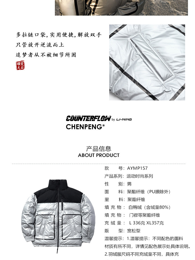 Li Ning, пуховик подходит для мужчин и женщин, спортивный костюм, оверсайз