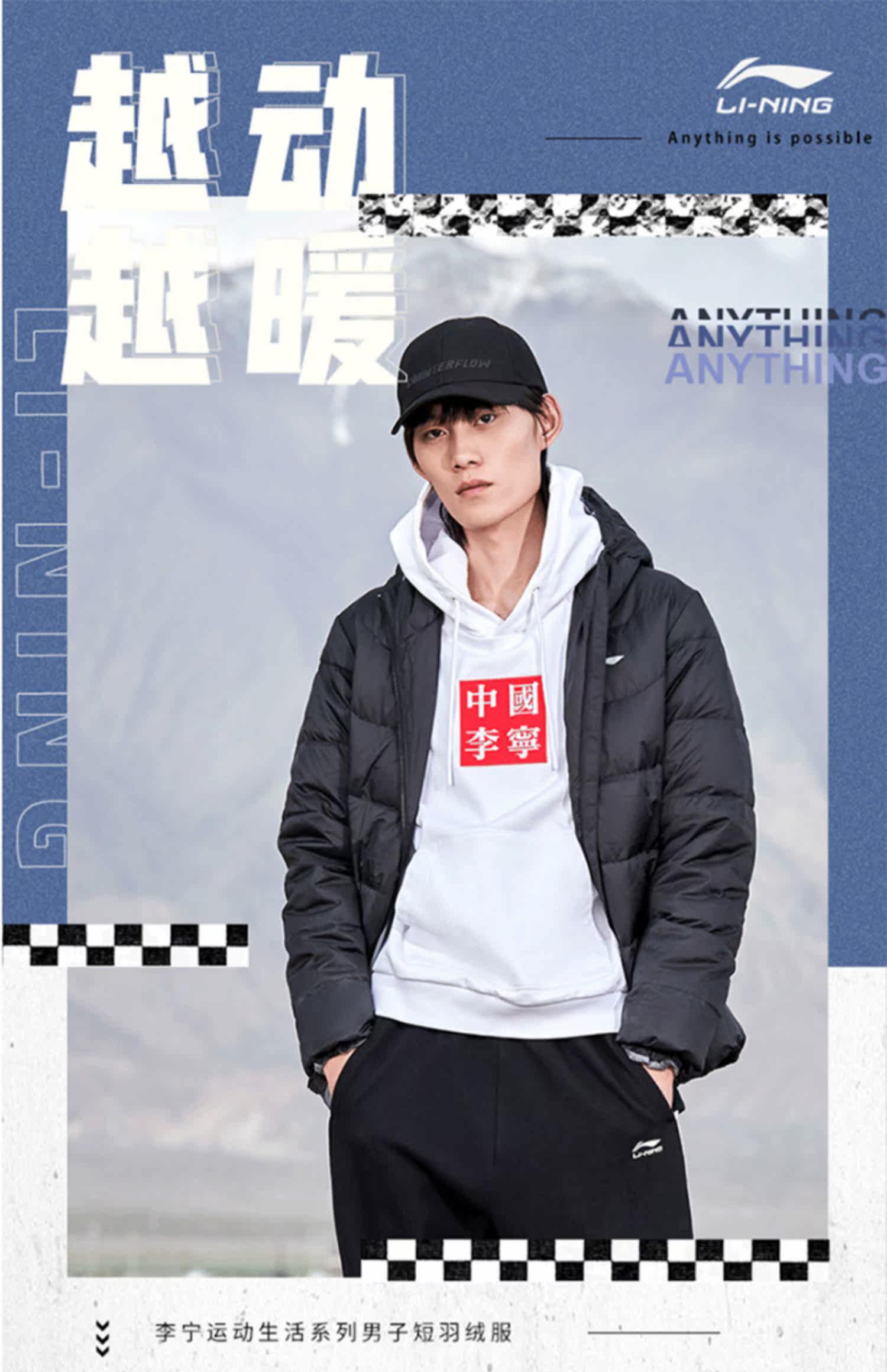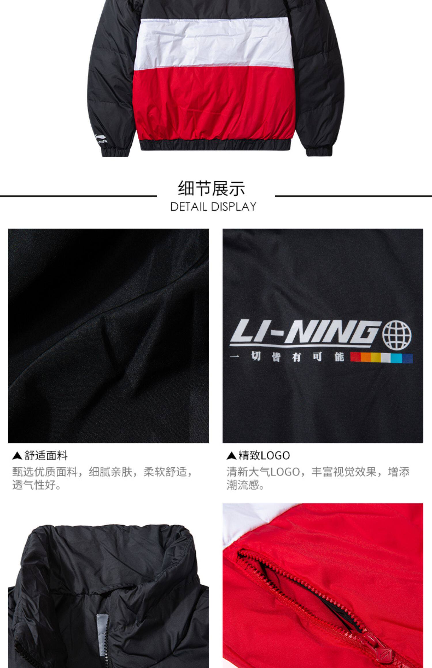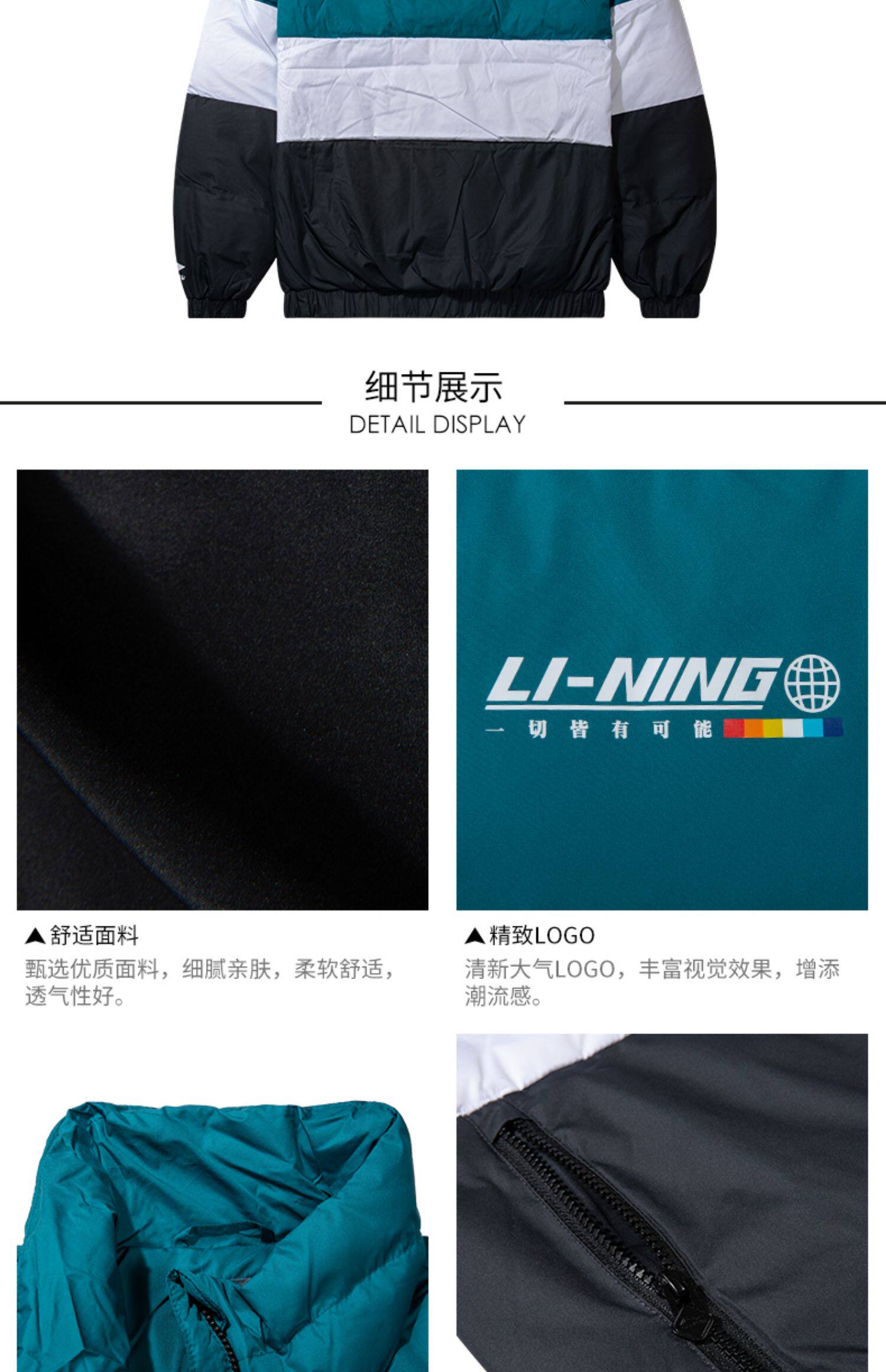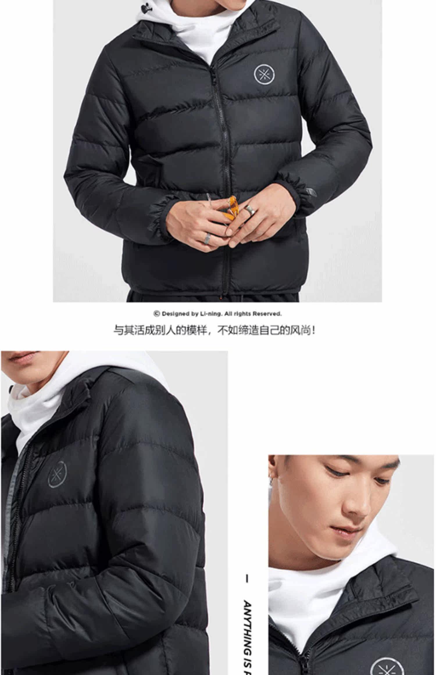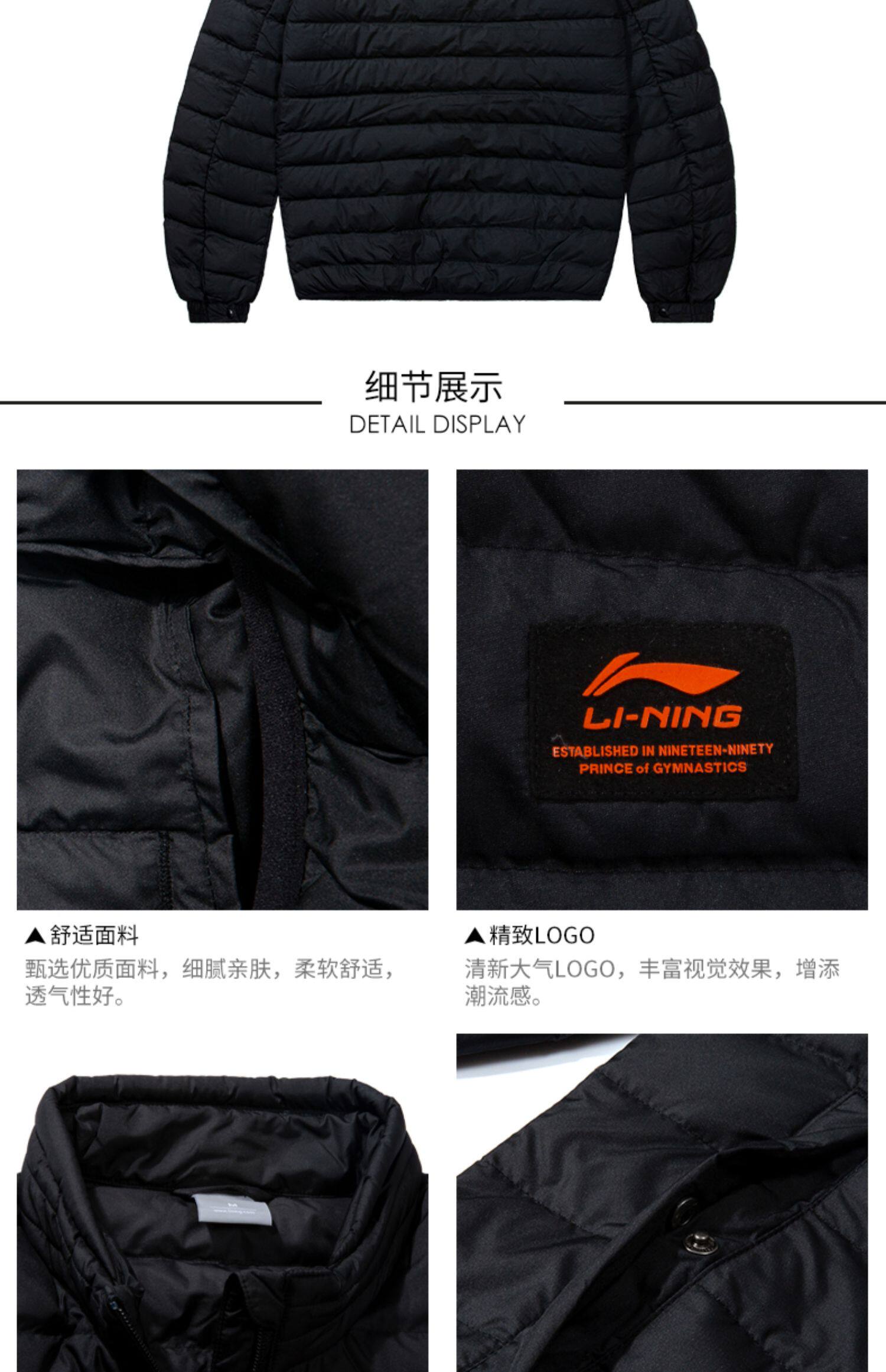 Li Ning, мужской ветрозащитный демисезонный пуховик, легкий и тонкий утепленный спортивный костюм, демисезонная куртка, гусиный пух, свободный крой