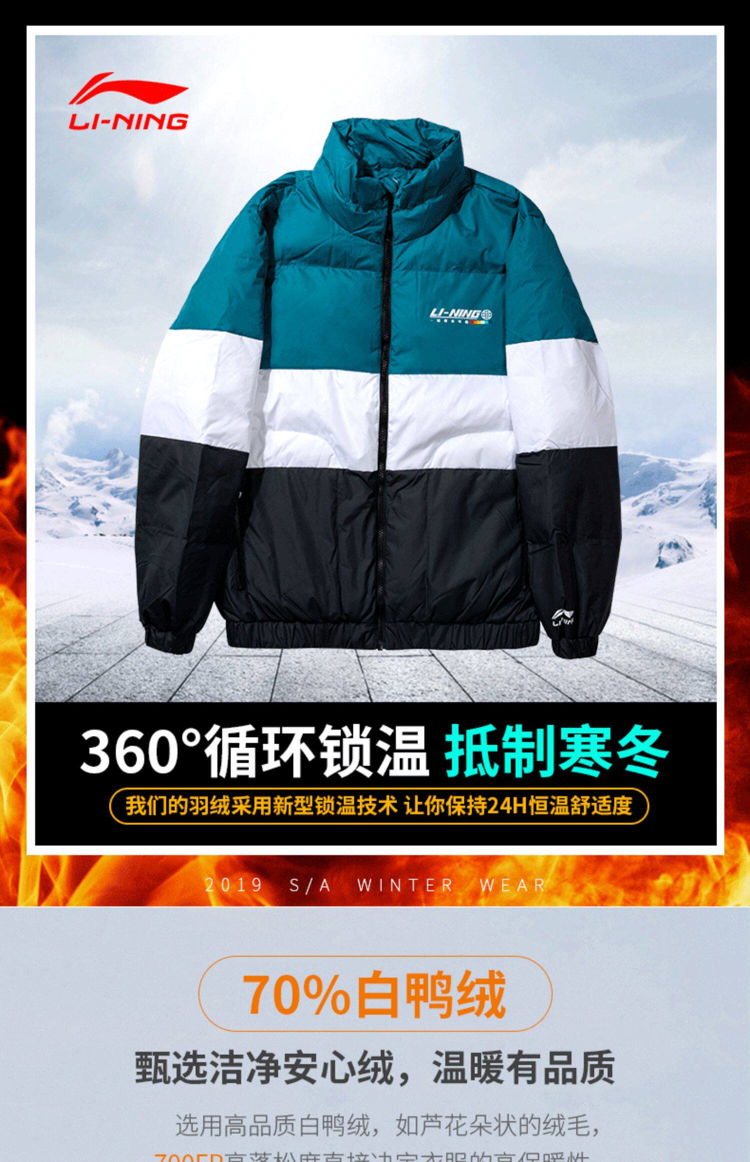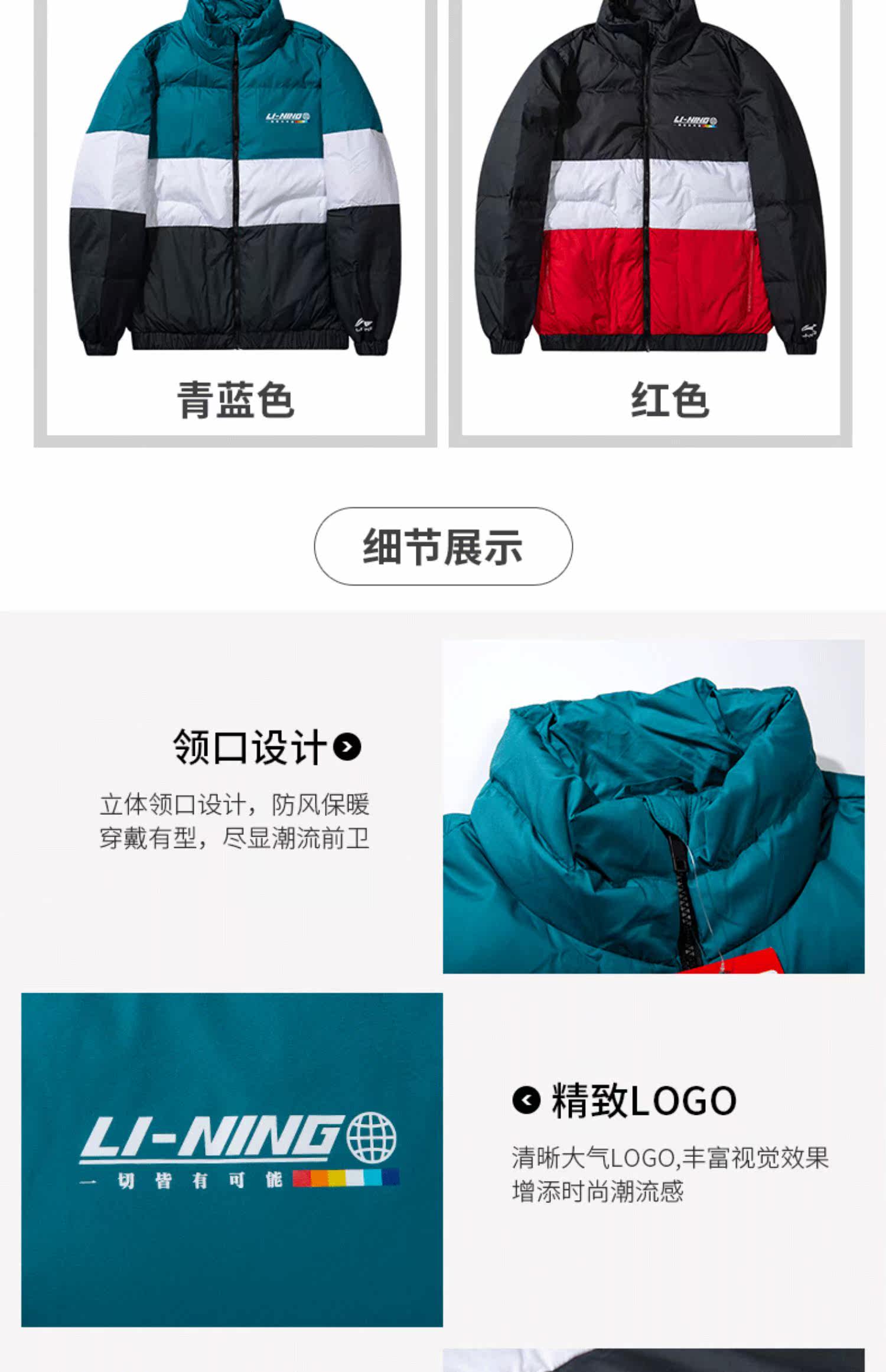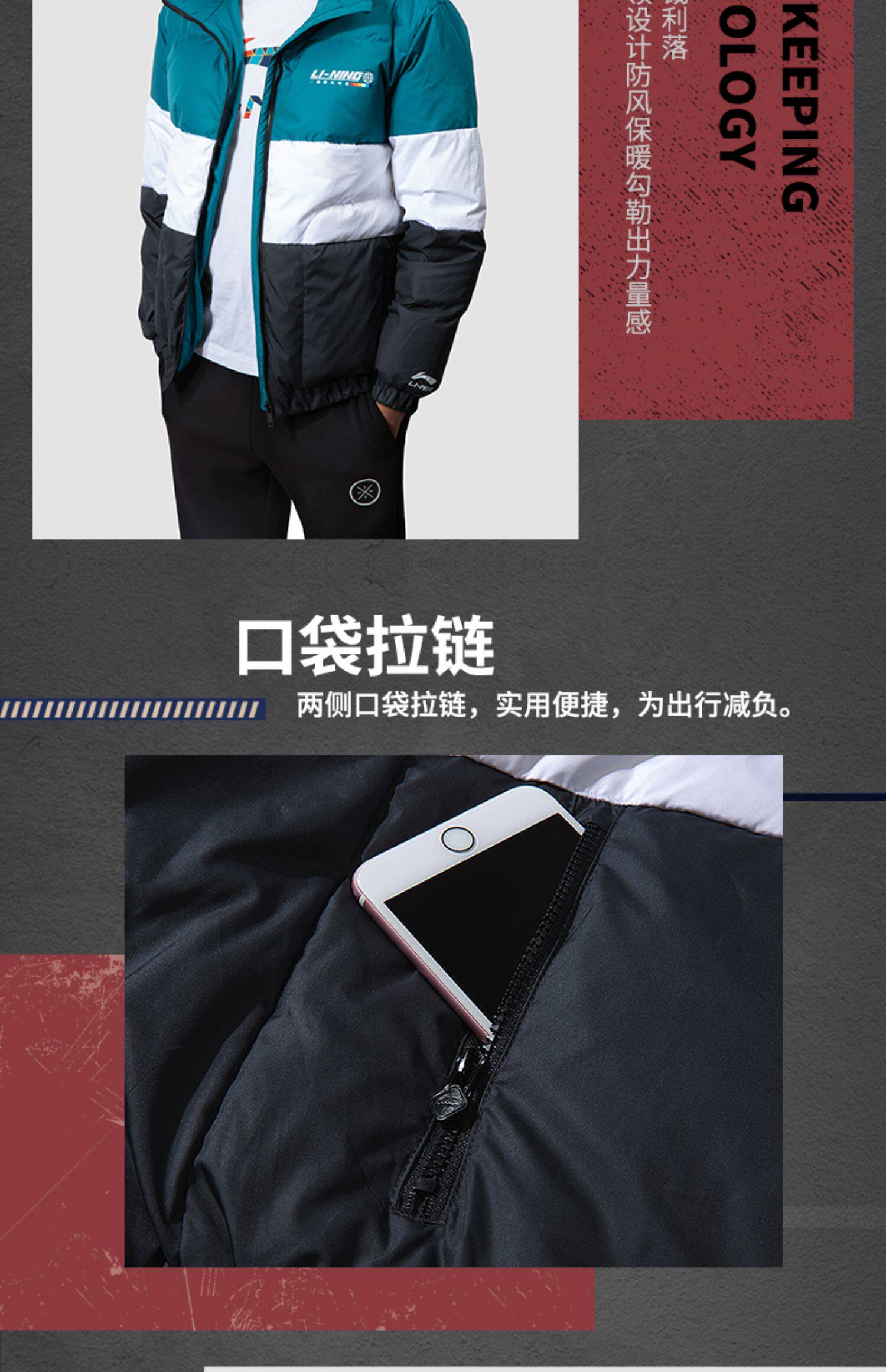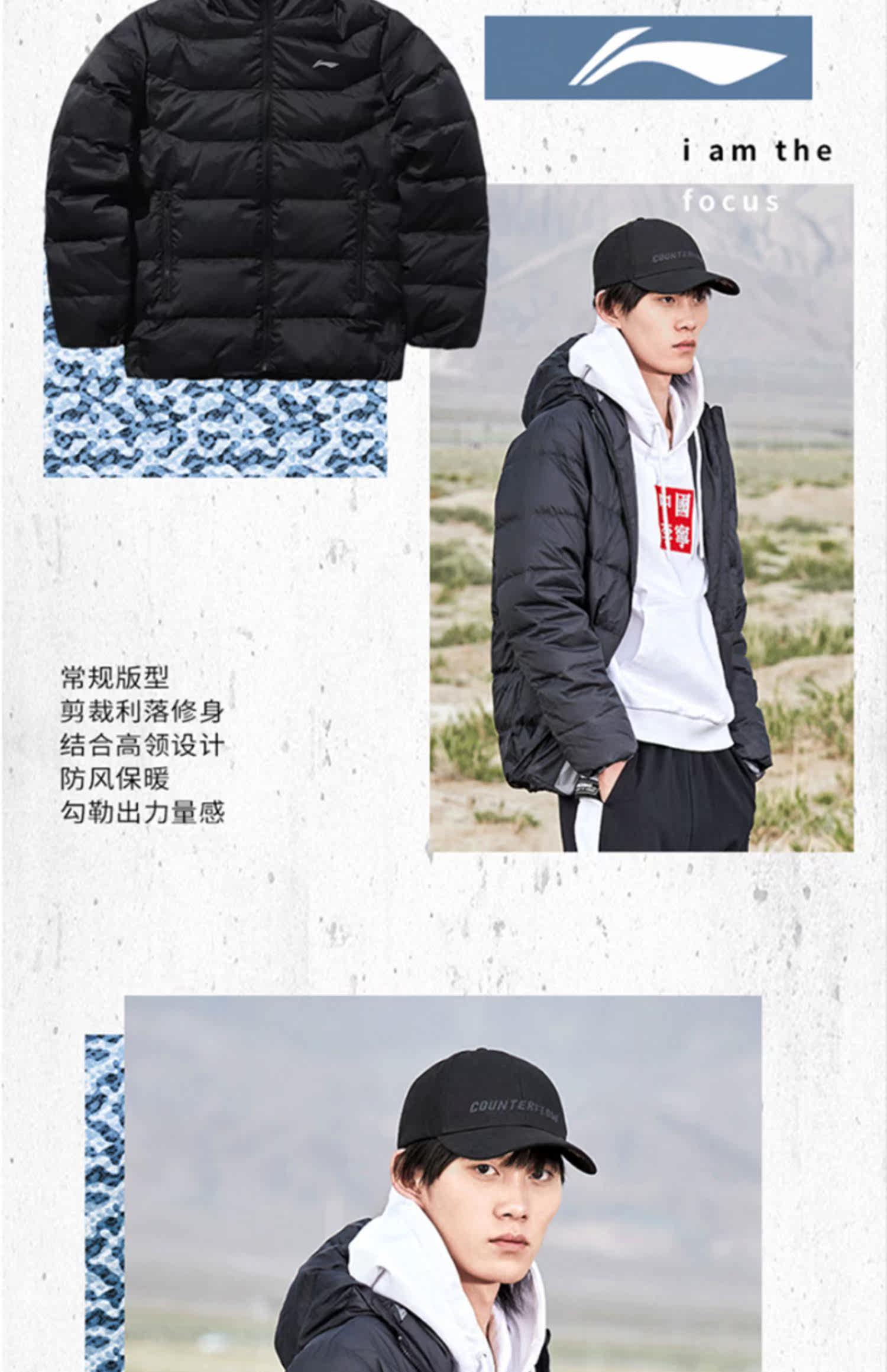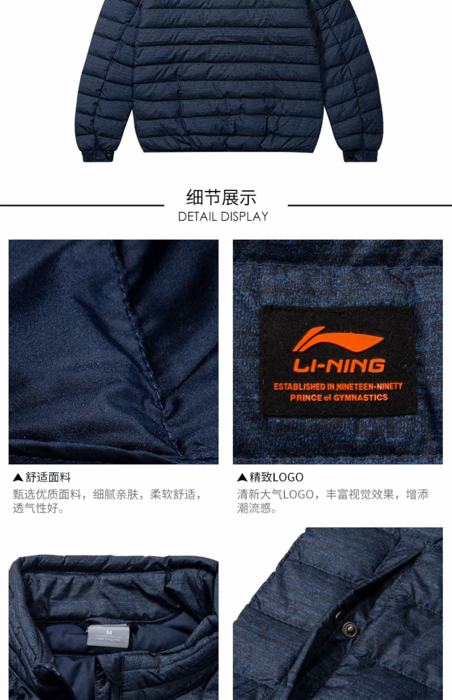 Li Ning, мужской ветрозащитный демисезонный пуховик, легкий и тонкий утепленный спортивный костюм, демисезонная куртка, гусиный пух, свободный крой