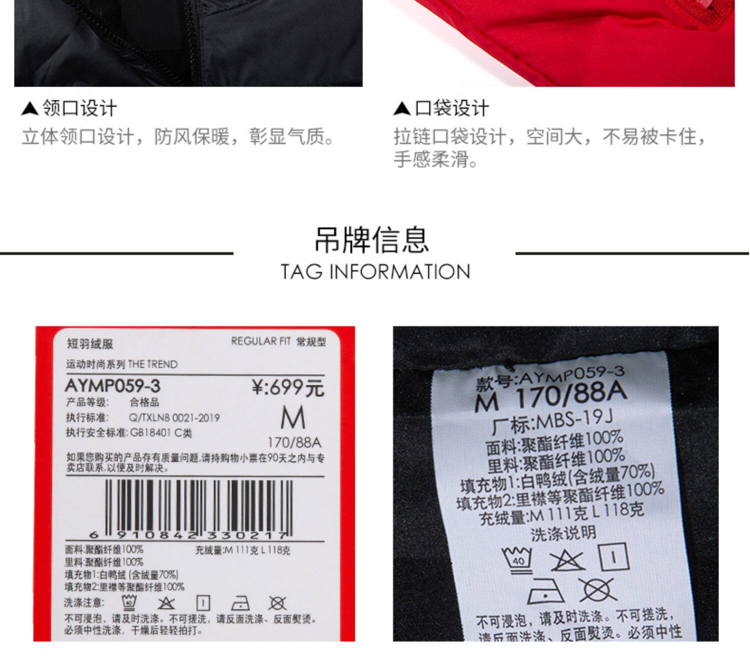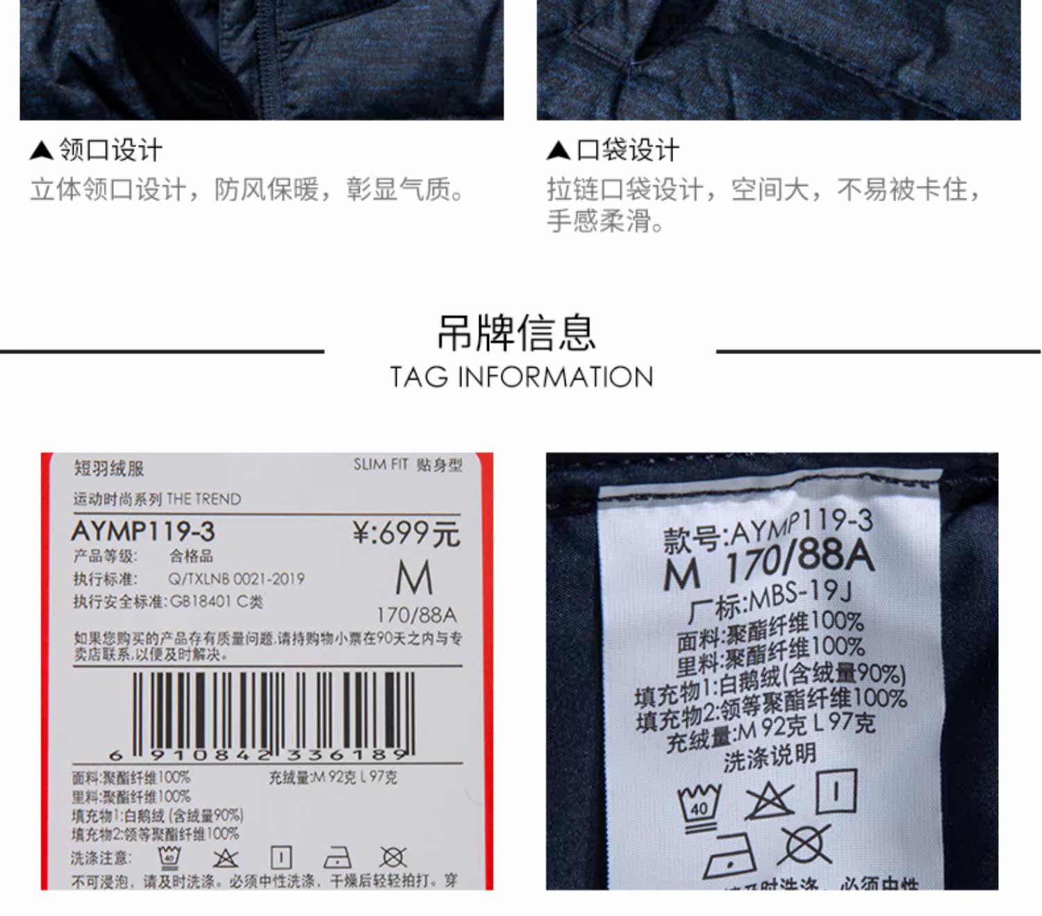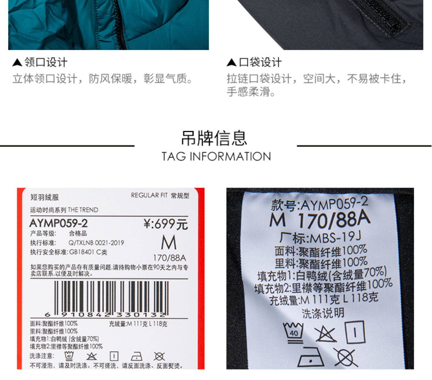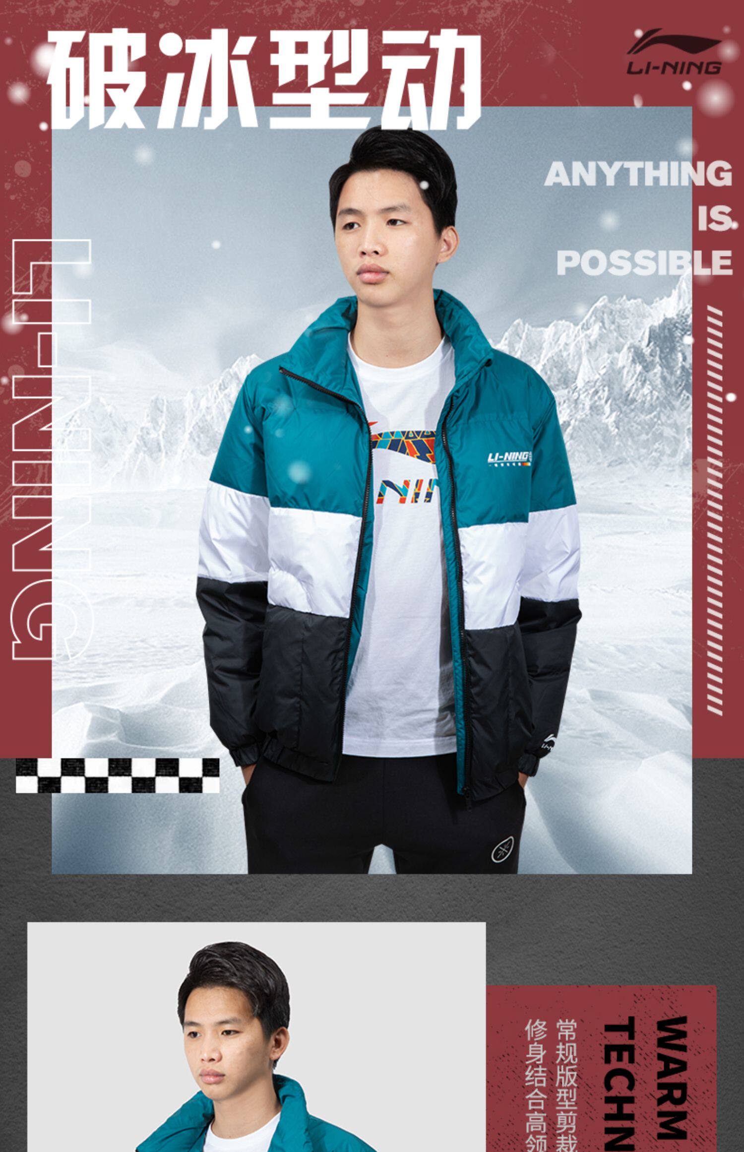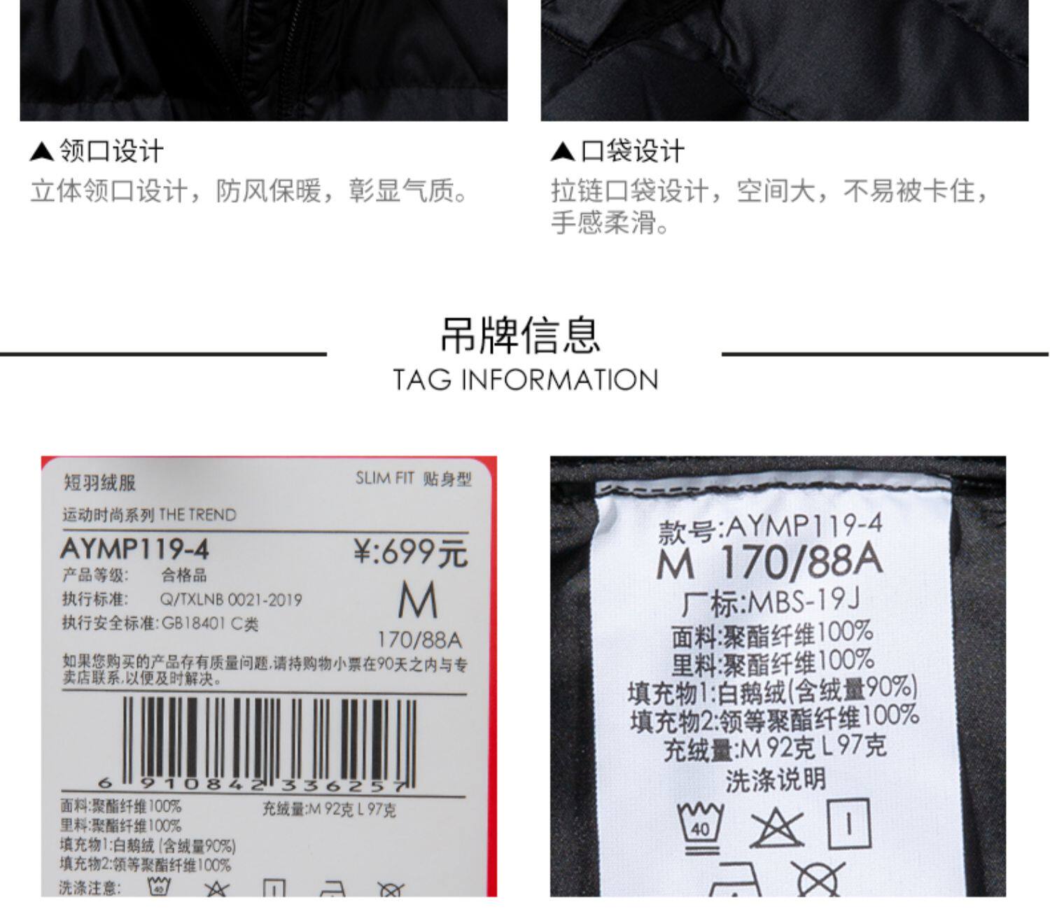 Li Ning, мужской ветрозащитный демисезонный пуховик, легкий и тонкий утепленный спортивный костюм, демисезонная куртка, гусиный пух, свободный крой