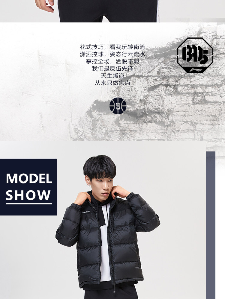 Li Ning, мужской пуховик, баскетбольное демисезонное термобелье, утепленный спортивный костюм, утиный пух