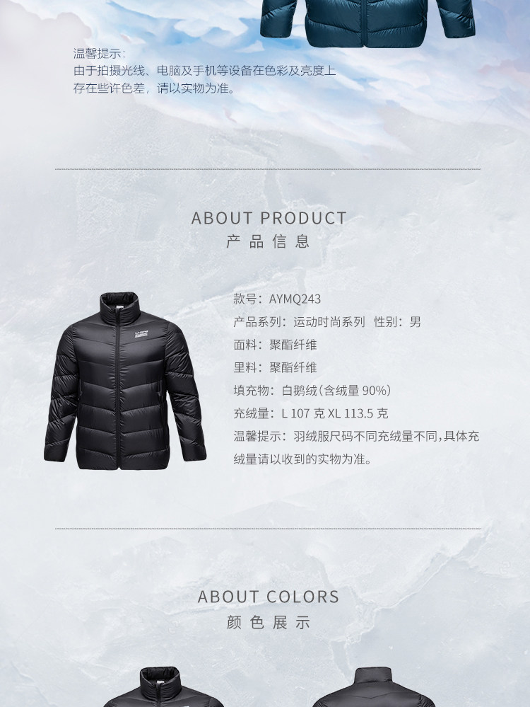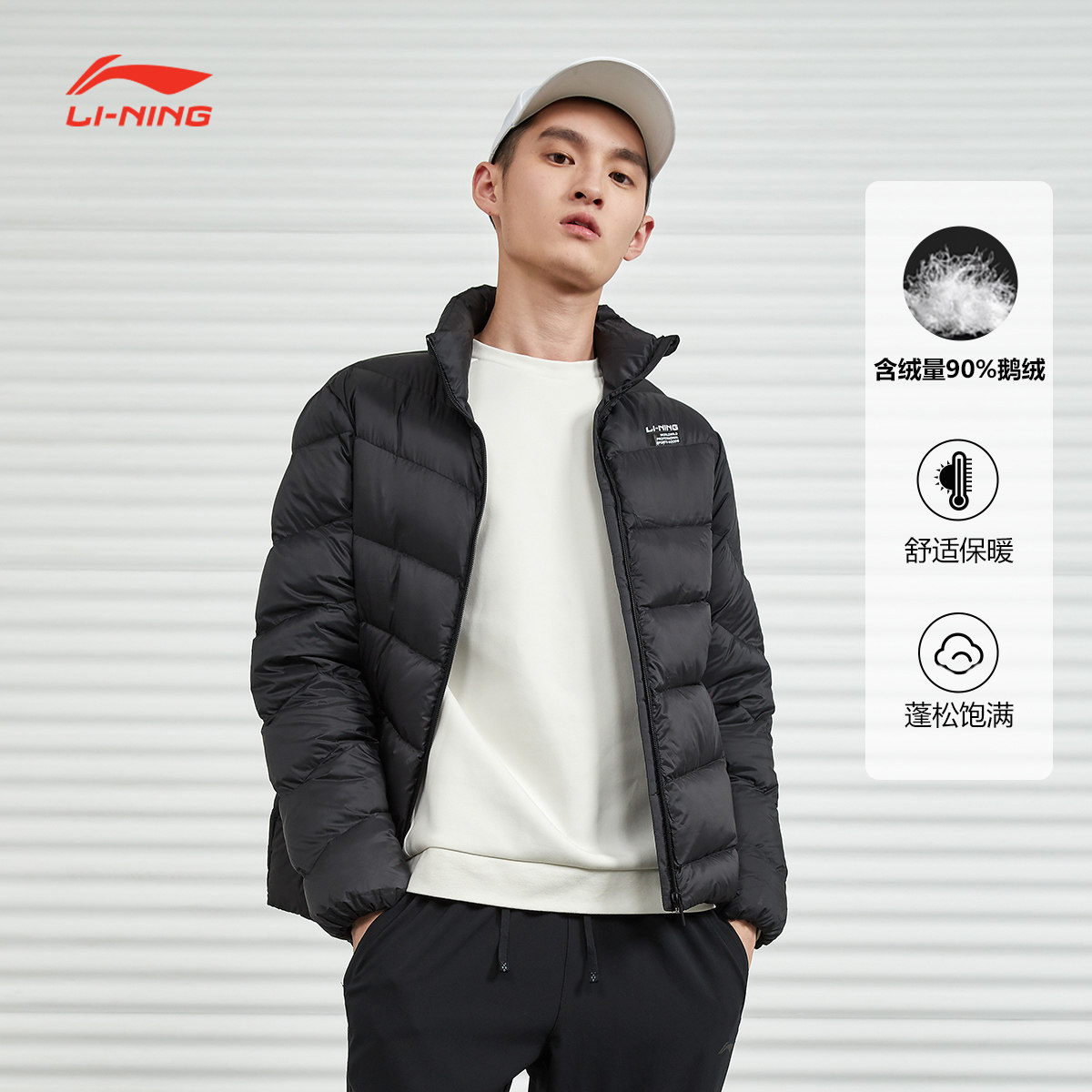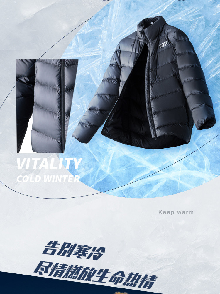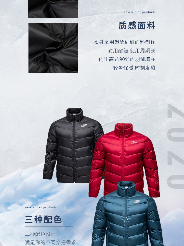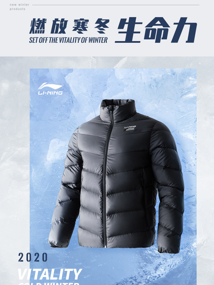 Li Ning, мужской легкий и тонкий удерживающий тепло зимний бархатный короткий спортивный пуховик, гусиный пух