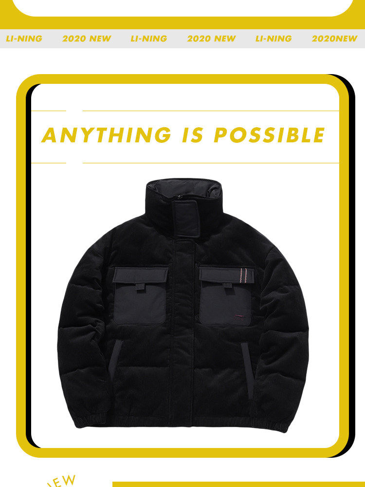Li Ning, зимний модный пуховик, ветрозащитный удерживающий тепло спортивный костюм, 2020, оверсайз