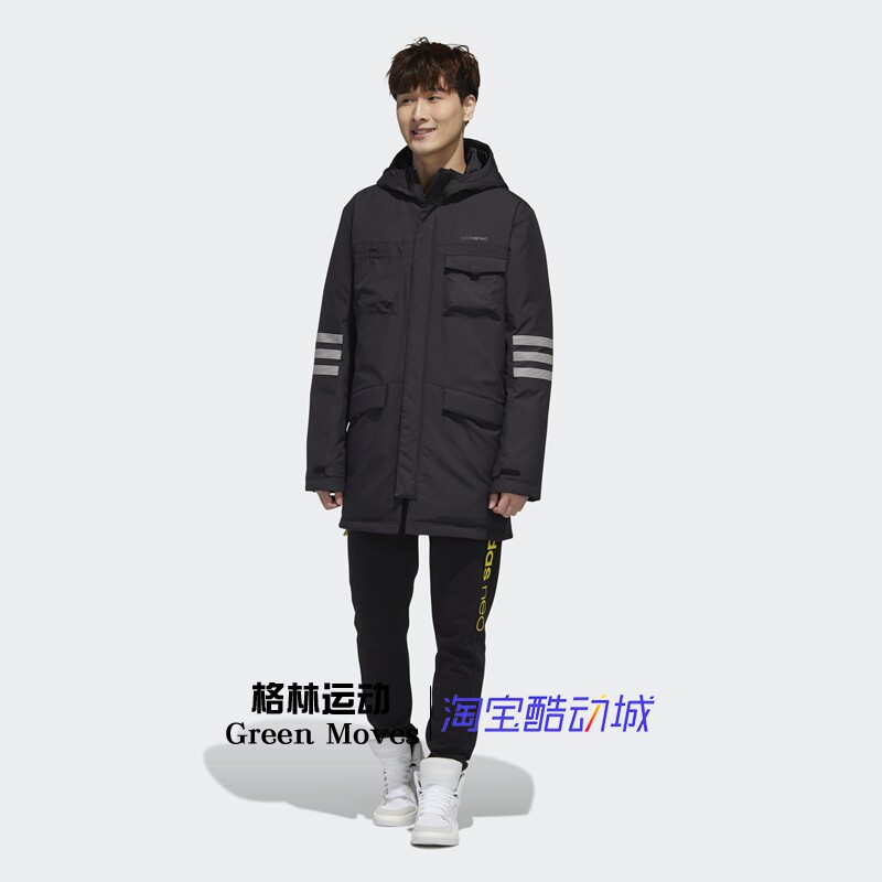 Adidas, комфортный длинный ветрозащитный удерживающий тепло спортивный пуховик с капюшоном, средней длины