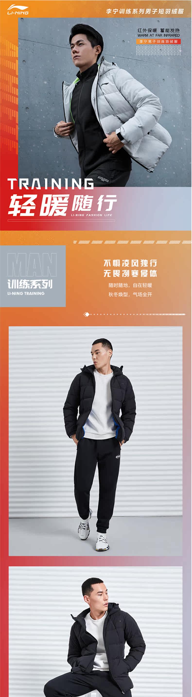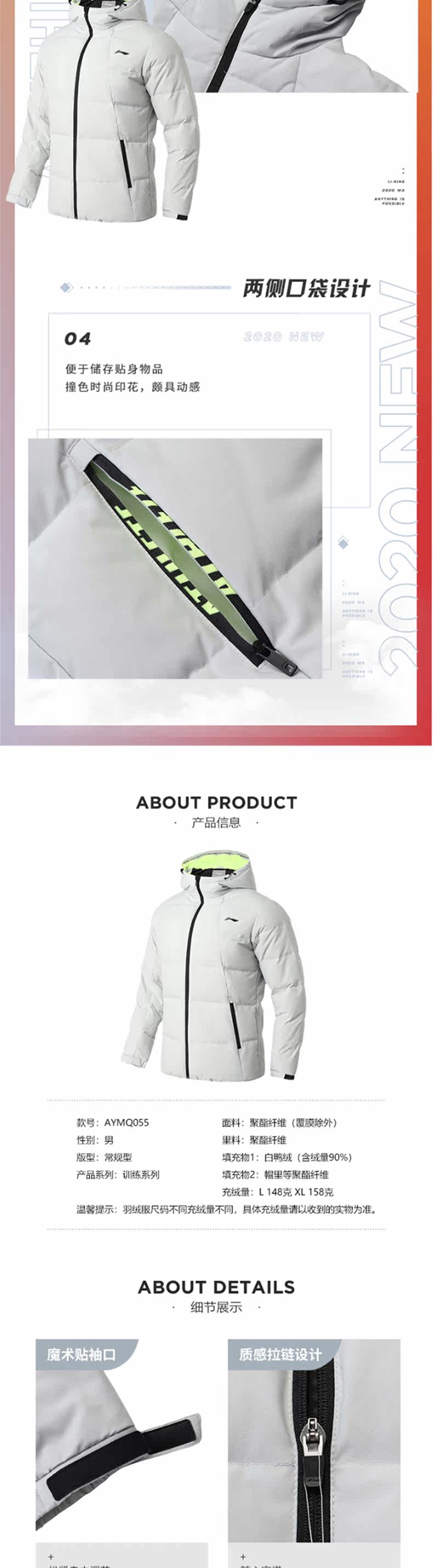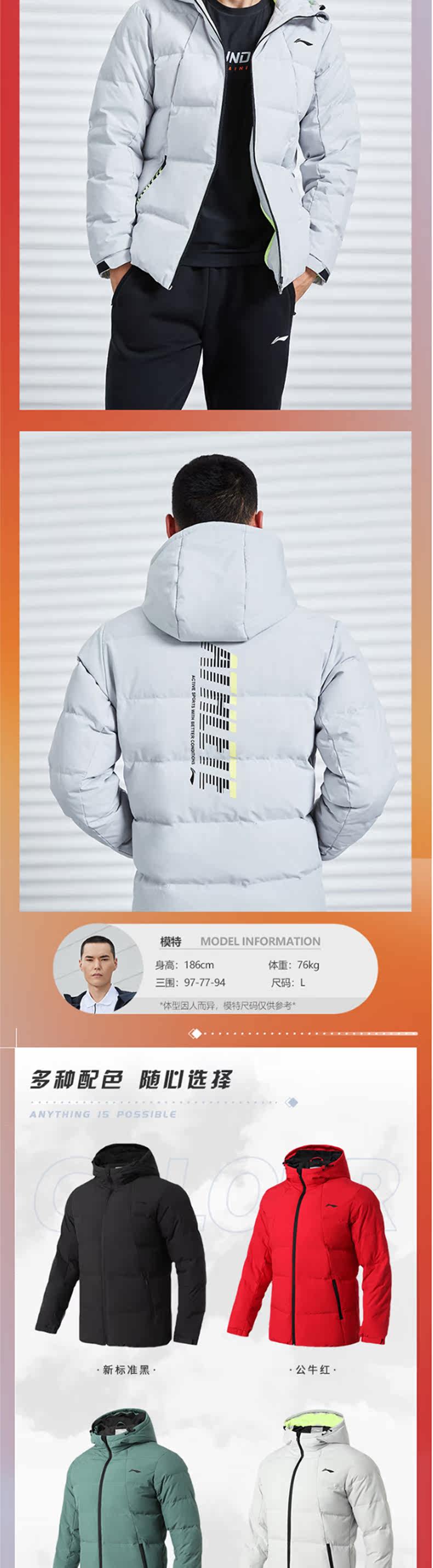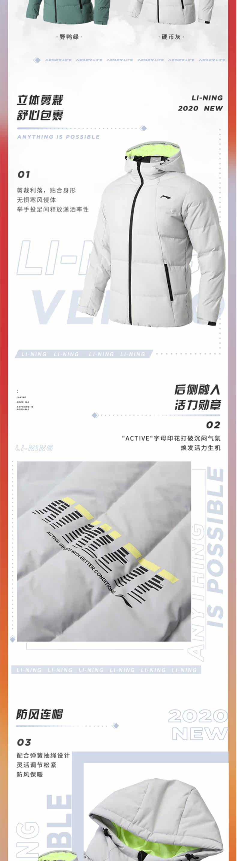 Li Ning, пуховик, демисезонная водоотталкивающая куртка с капюшоном, короткий спортивный костюм для отдыха