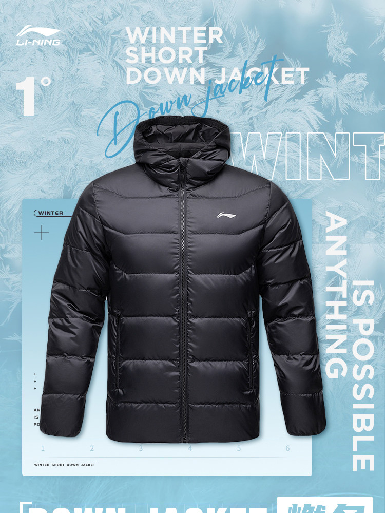 Li Ning, демисезонный короткий легкий и тонкий пуховик для отдыха, бархатная удерживающая тепло толстовка с капюшоном, спортивный костюм, утиный пух