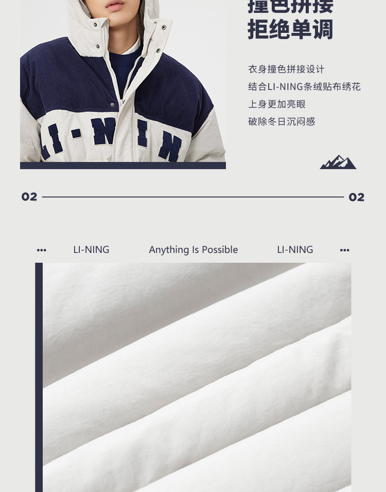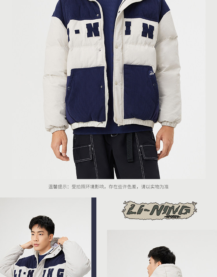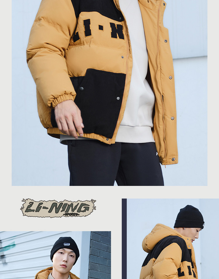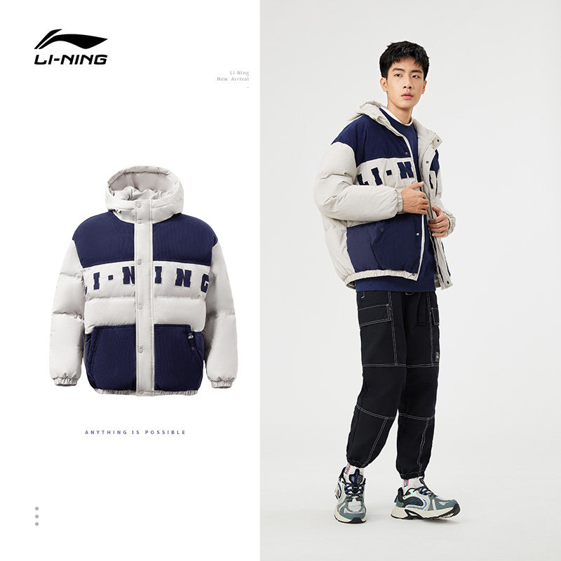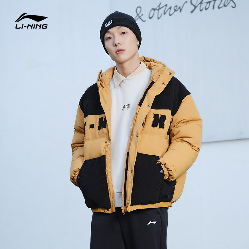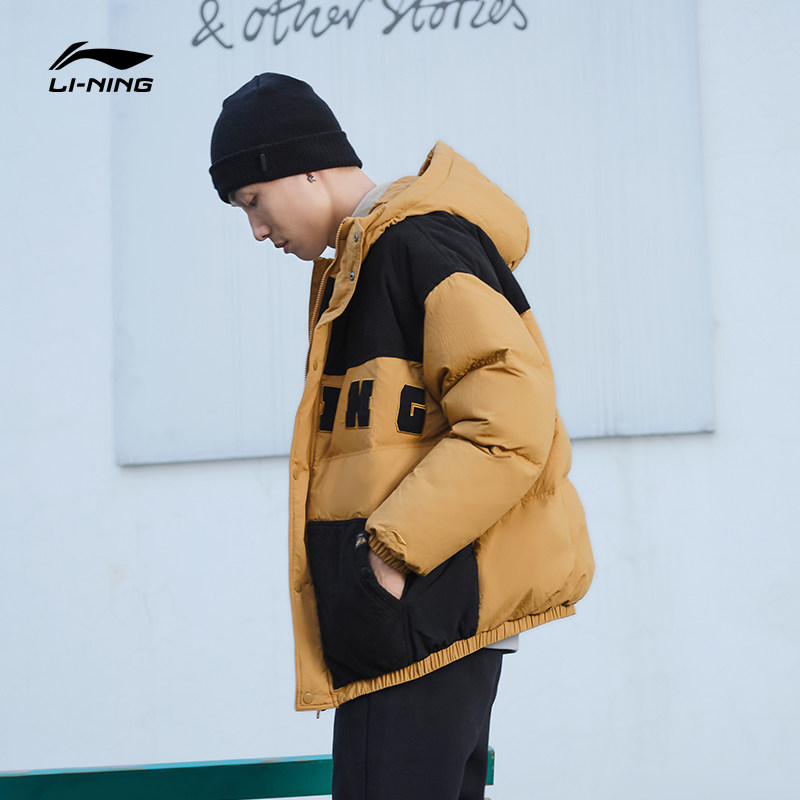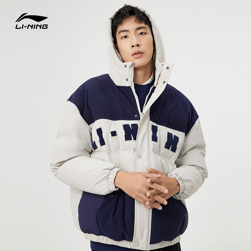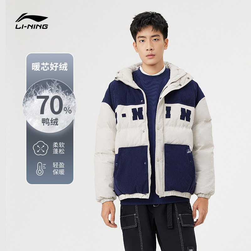 Li Ning, мужской зимний трендовый пуховик, мужская куртка с капюшоном, бархатный удерживающий тепло спортивный костюм, с вышивкой, оверсайз, утиный пух