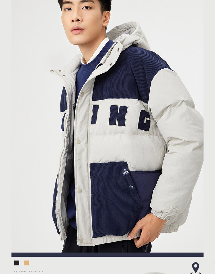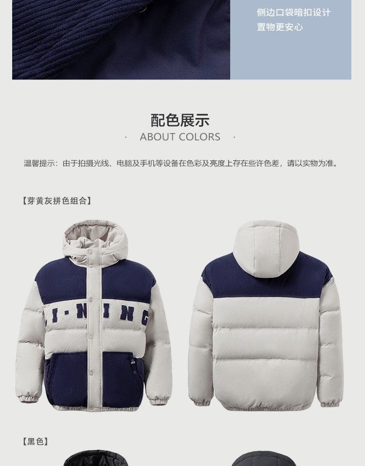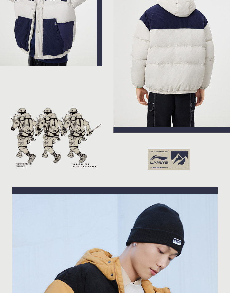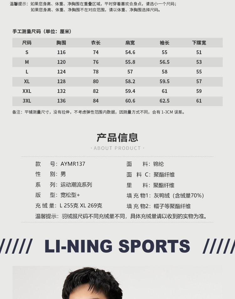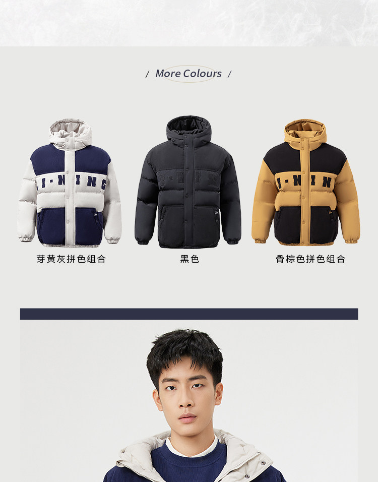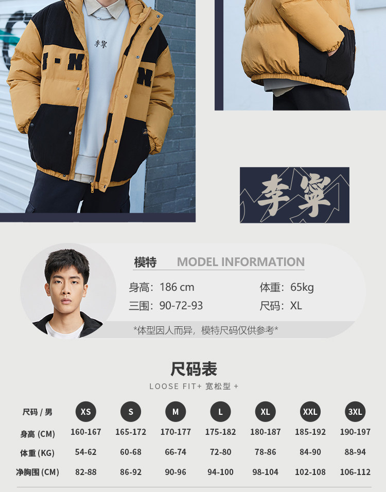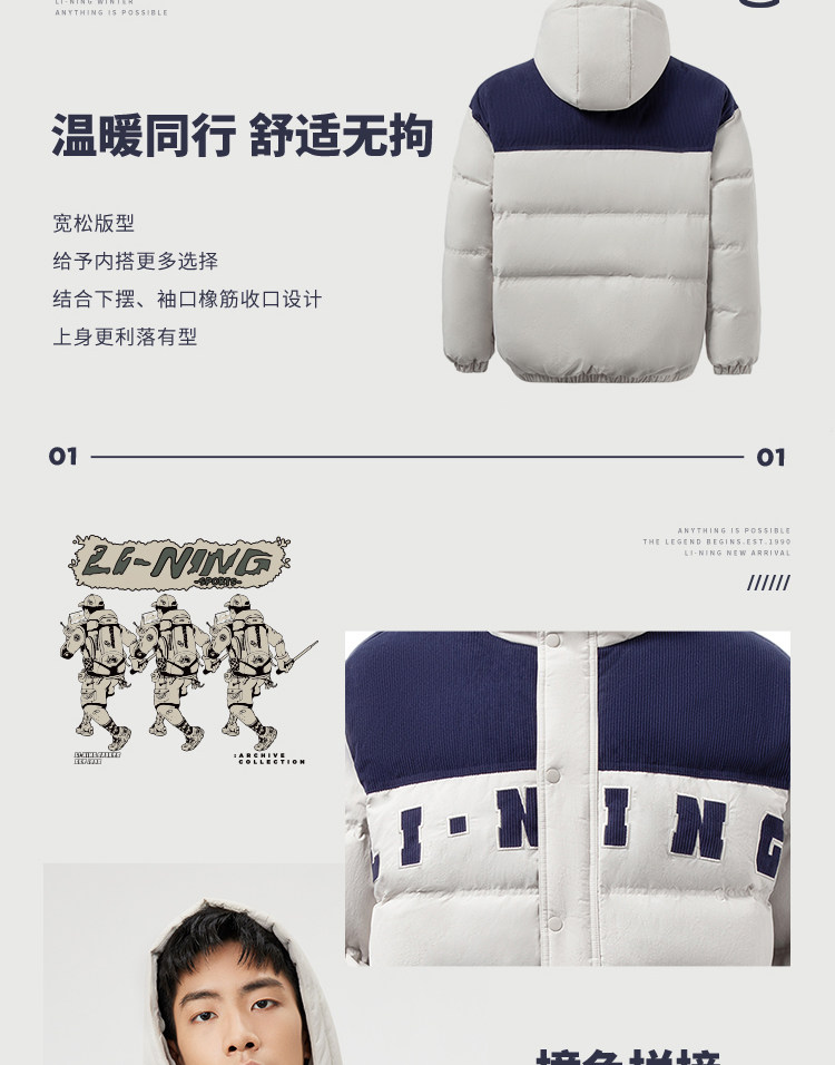 Li Ning, мужской зимний трендовый пуховик, мужская куртка с капюшоном, бархатный удерживающий тепло спортивный костюм, с вышивкой, оверсайз, утиный пух