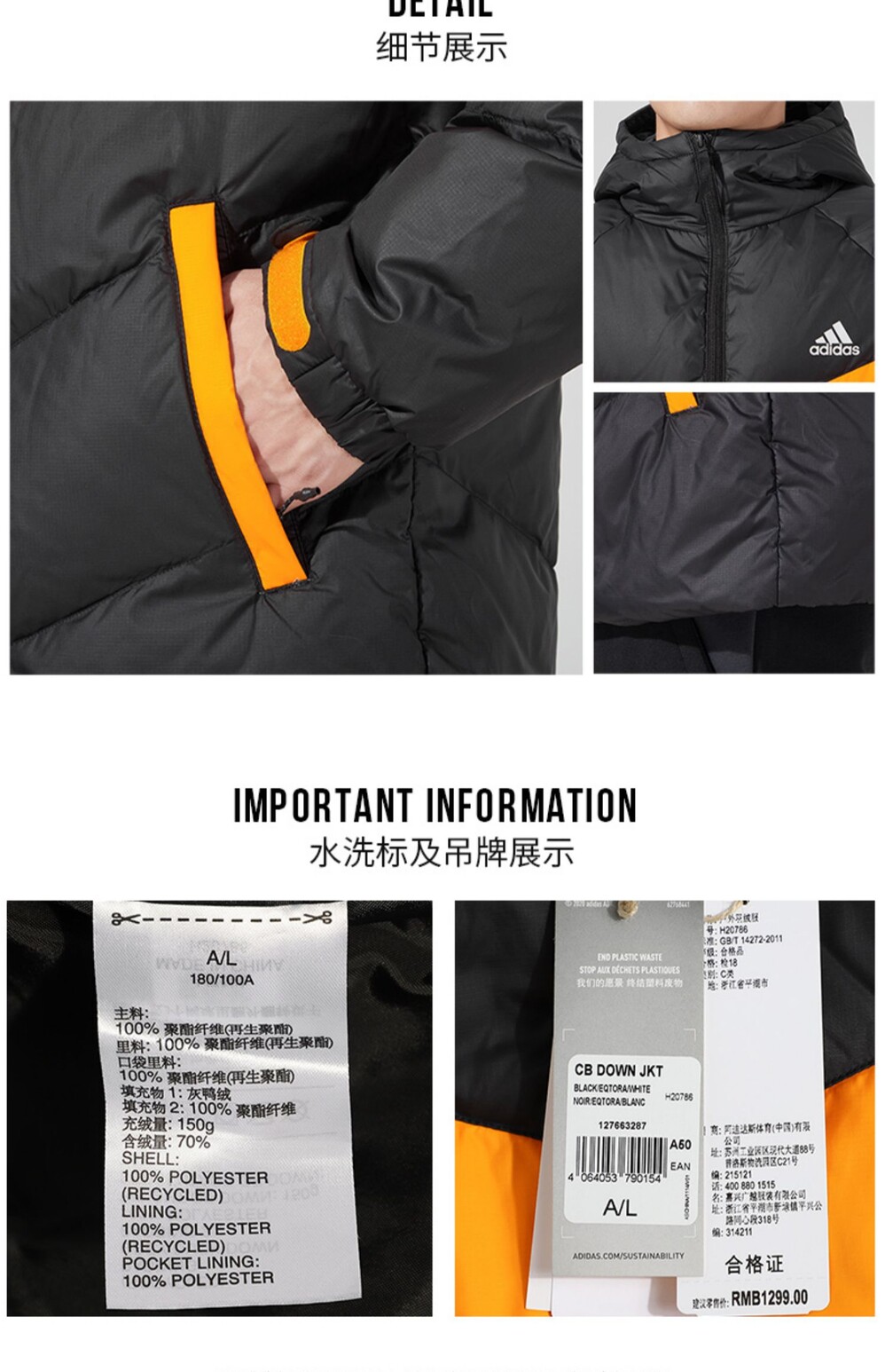 Adidas, зимний дорожный мужской пуховик