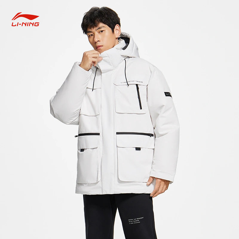 Li Ning, демисезонный зимний удерживающий тепло пуховик, съемный утепленный спортивный костюм с капюшоном, утиный пух