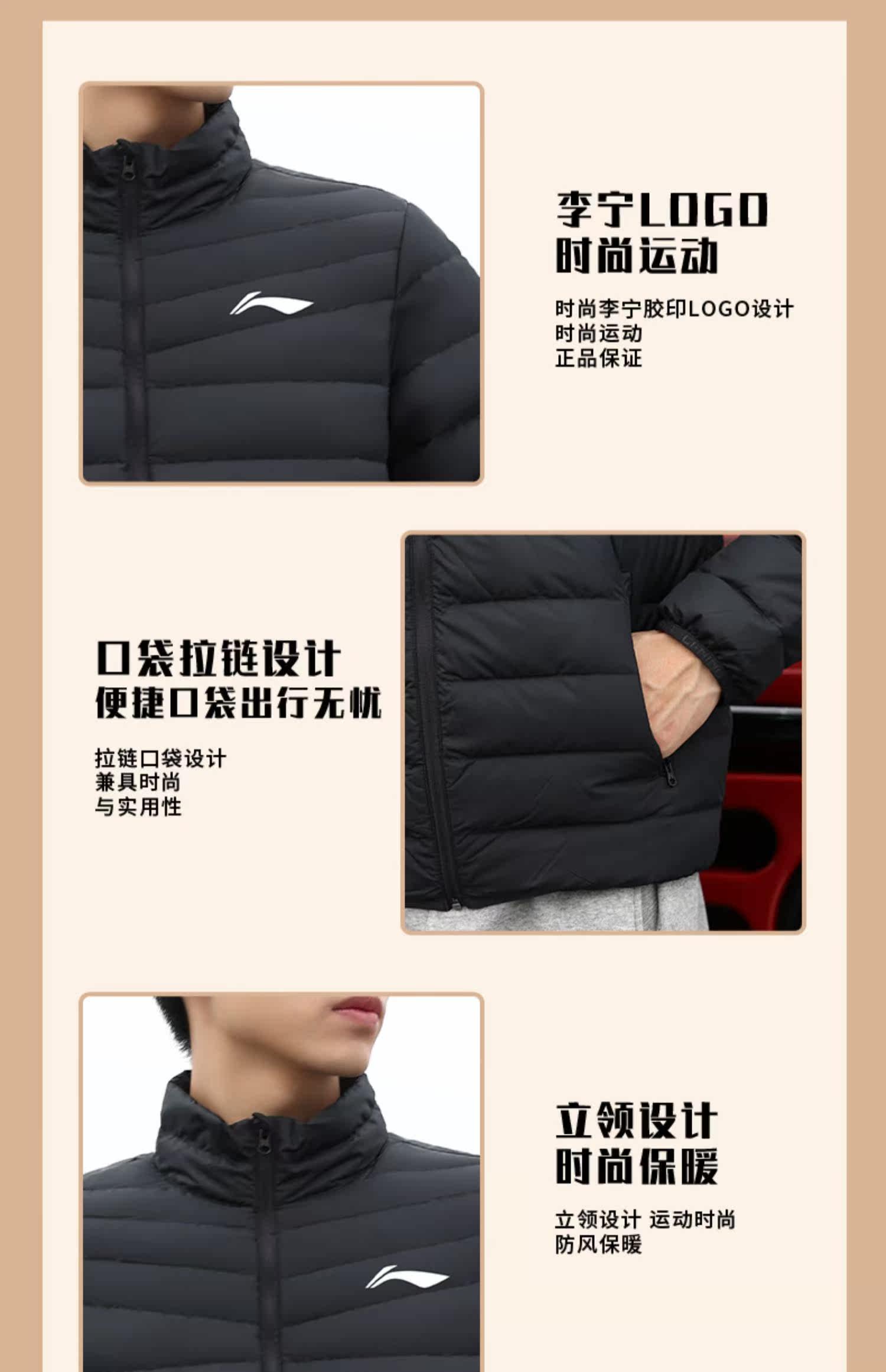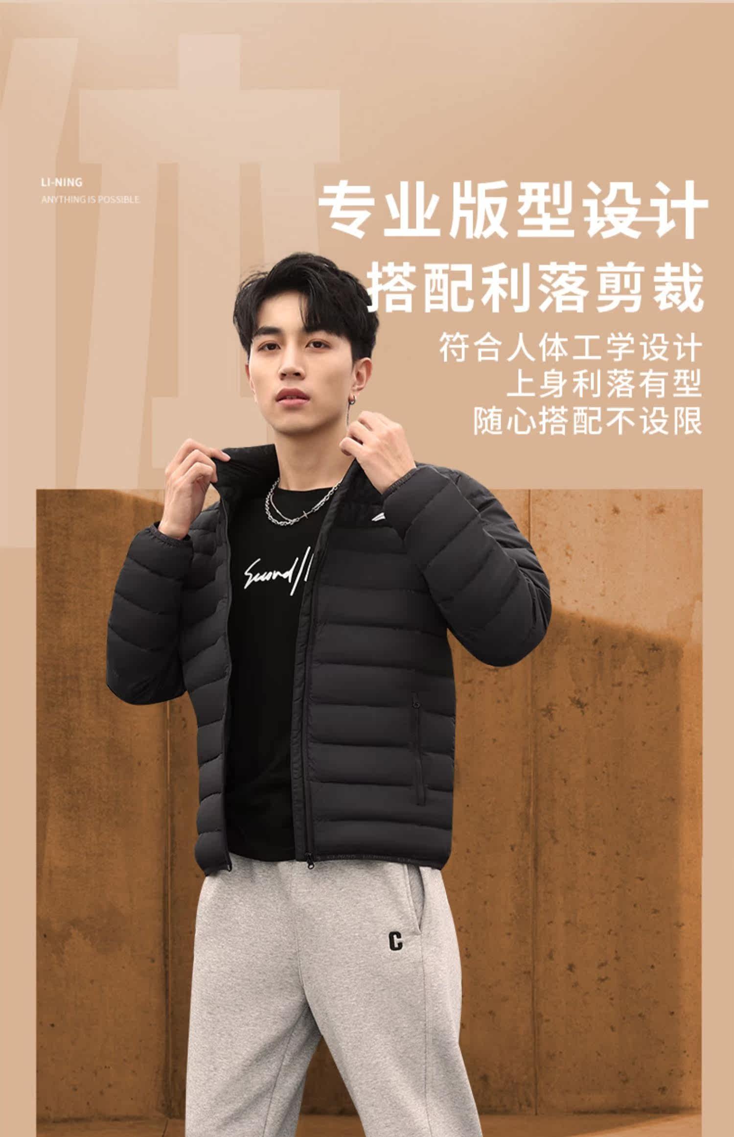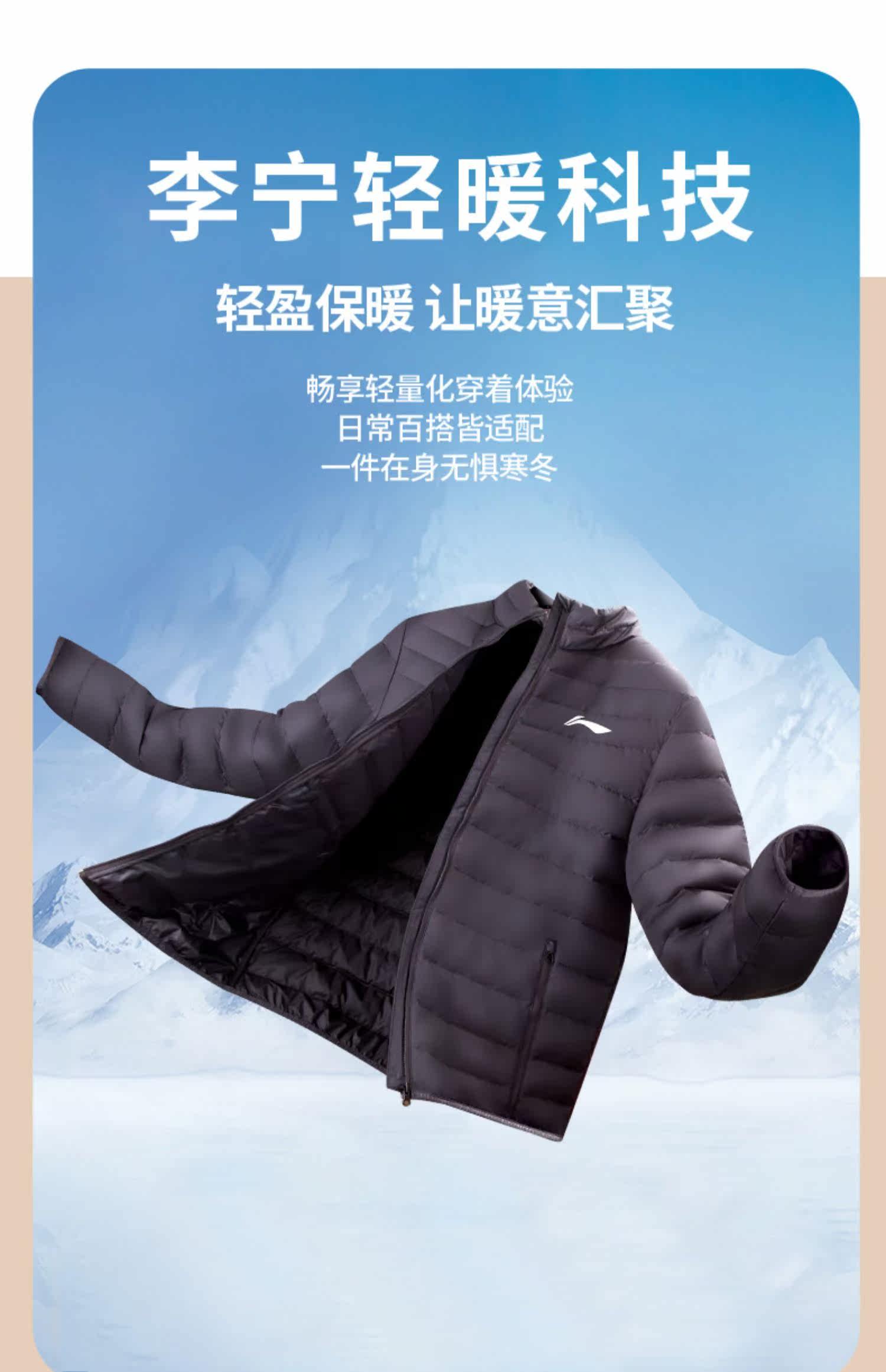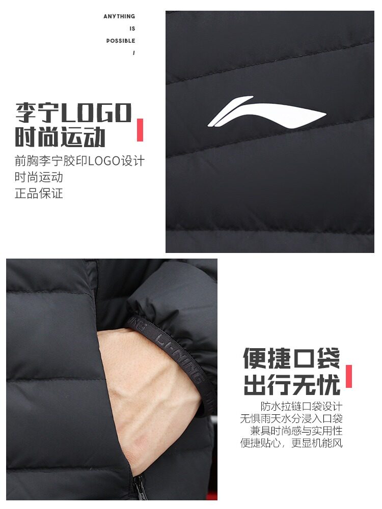 Li Ning, осенний пуховик, легкий и тонкий короткий спортивный костюм, куртка, утиный пух