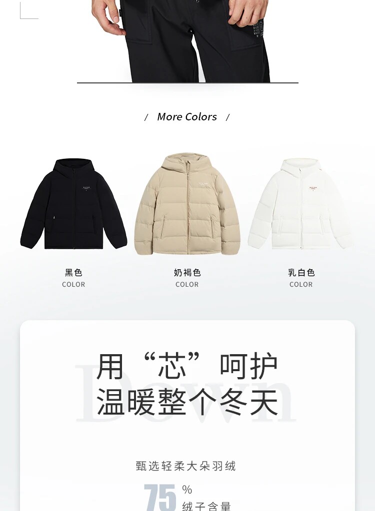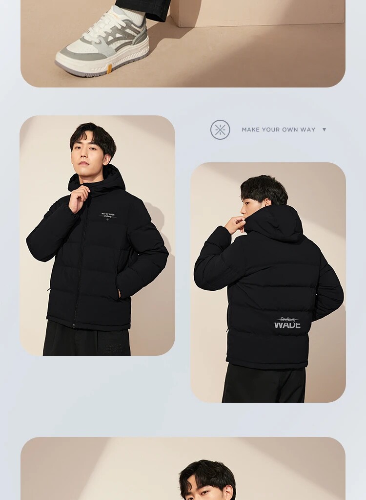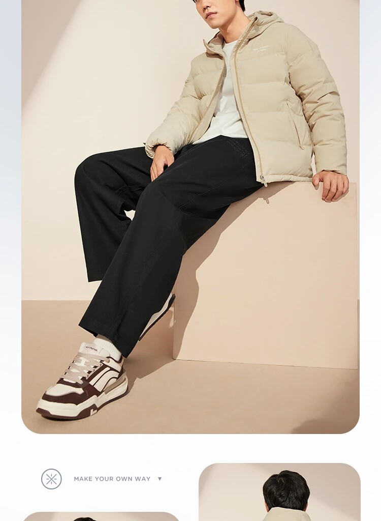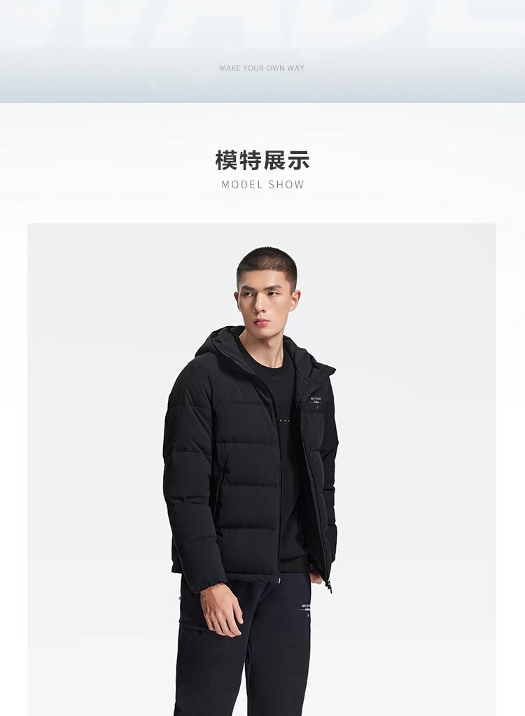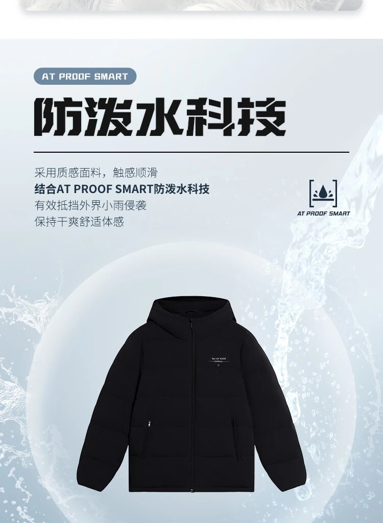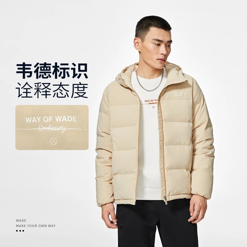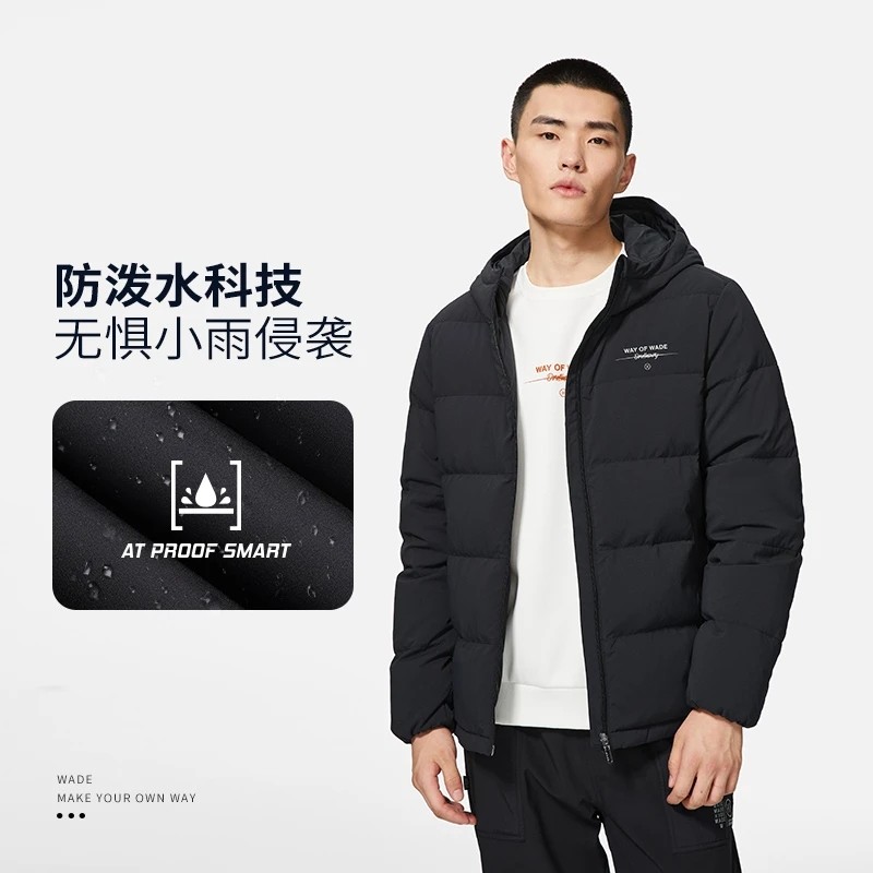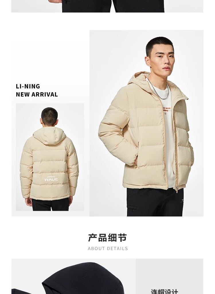 Li Ning, демисезонный пуховик, водоотталкивающая бархатная удерживающая тепло спортивная толстовка с капюшоном, гусиный пух